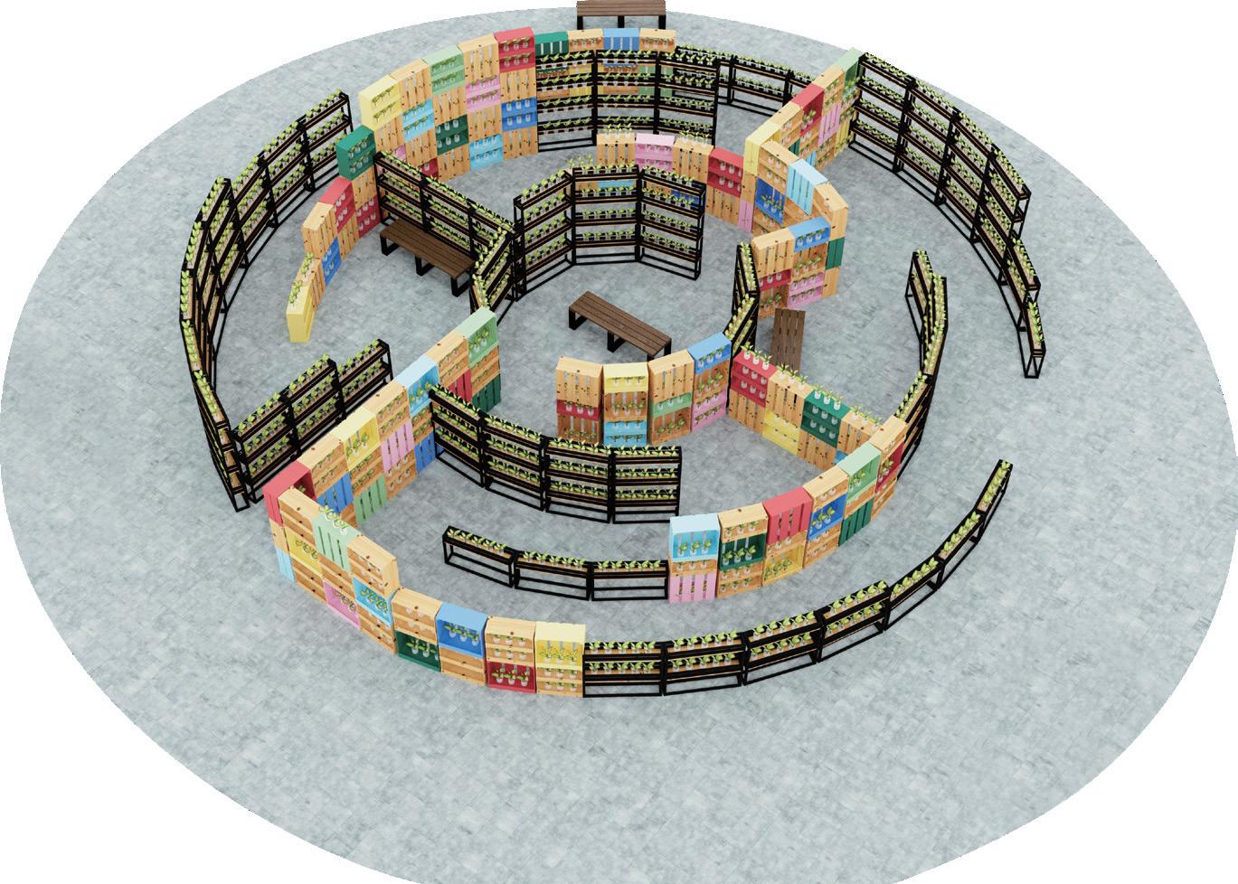 置的任何位置;還能一邊聆聽充滿情境氛 圍的音樂,一邊漫步於裝置內。隨著 3 個 月展期,綠苗將成長、覆蓋在迷宮裝置的 各個角落裡,「這裡將成為與民眾集體創 作,屬於歌劇院獨有的『Living Maze 會呼 吸的迷宮』」陳慧感性地說,「這座『會 呼吸的迷宮』將在最美的時刻拆解,被 民眾帶回,成為一株株『熟成的永續作 品』。」