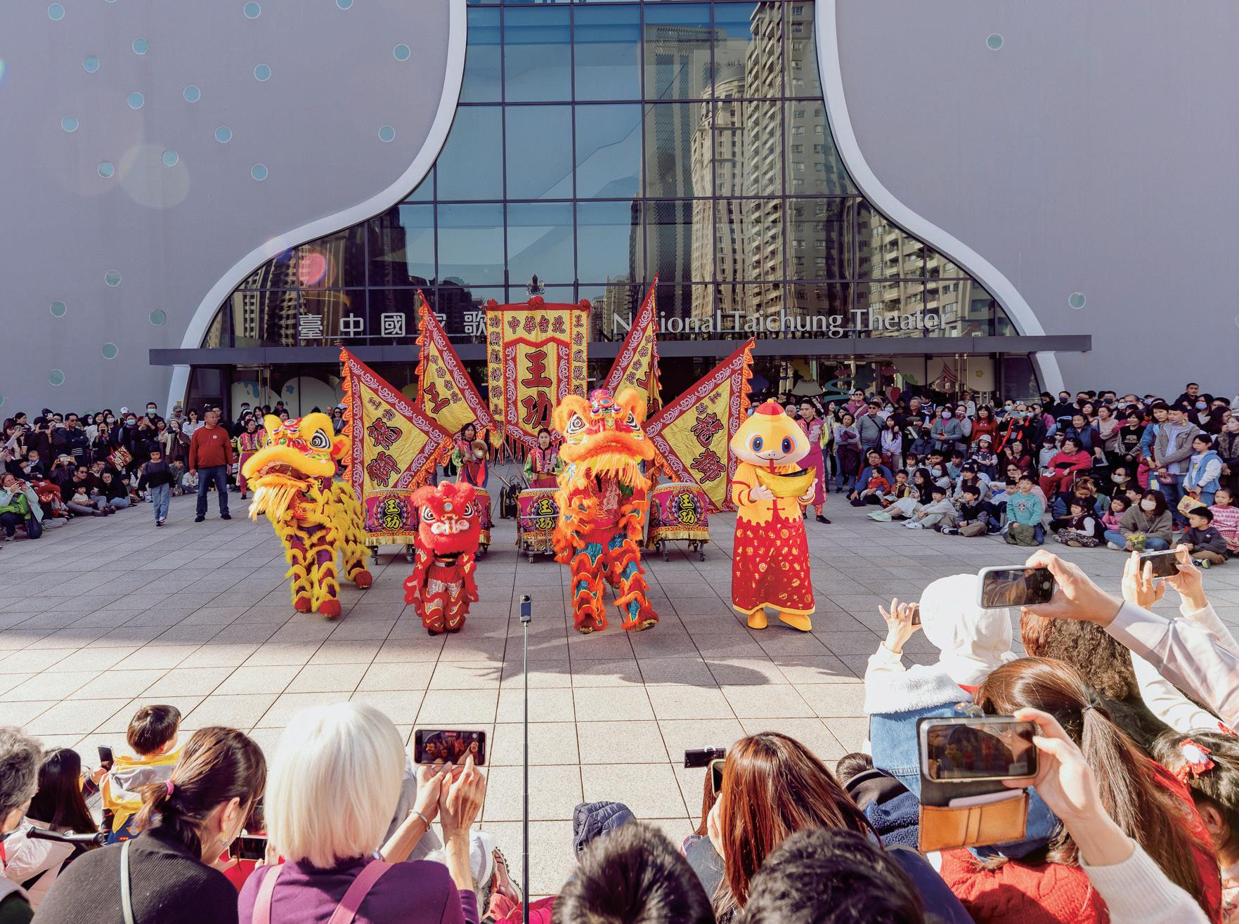 歌劇院與王功龍獅團的春節演出,年年以創意和民眾 互動,活潑可愛的小獅子登場必成焦點,喜趣又親和。