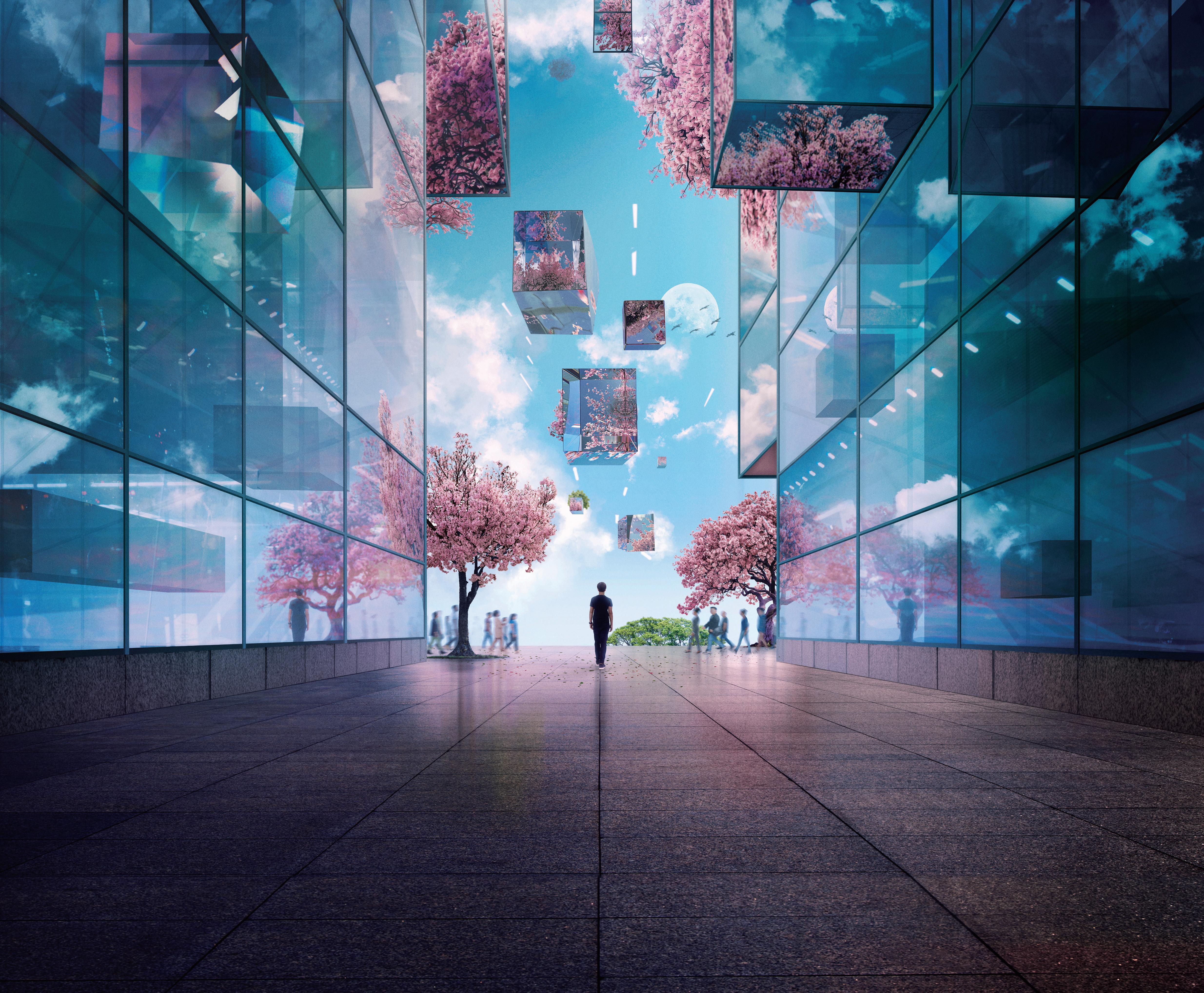 空中花園以圓形舞台設計,搭配有故事感的音樂,為 裝置打造具劇場感的聲響體驗。