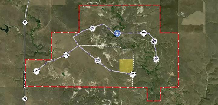 Unit Lingle, Goshen County, Wyoming Rolling hills and draws on 520± total deeded acres. Water rights include 150± acres and there is also a permitted stock reservoir.