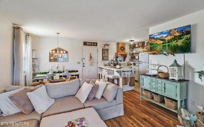 Barndominium with Wolf River frontage. Kitchen/living area with electric fireplace. Red Hill Rd, Pall Mall - #H241188