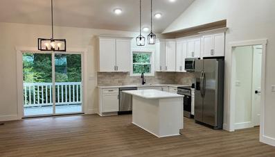 New Construction In Whispering Winds • Laurel Dr, Jamestown • $329,000 CUSTOM-BUILT ON A CORNER LOT & LOADED WITH PREMIUM FEATURES. Quartz countertops, 9’ ceilings, cathedral ceiling, vaulted ceiling in MBR, tile showers, covered back porch with composite decking, SS appliances & basement with concrete pad. #H239876