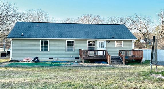 This could be yours !!! Charming Picture Perfect home! Open floor plan with spacious living room, kitchen and dining area. Cozy fireplace brings warmth to the living area. Kitchen has white cabinets with Quartz counter tops, with a work island Lots of crown moldings, and trey ceilings. Primary bedroom is spacious with large bathroom with a tile walk in shower. Large walk in closet. There is a covered back porch with a large attached deck to enjoy grilling or entertaining. Great fenced in back yard with fire pit to sit around in the evenings. Nice size storage building will remain with the home.