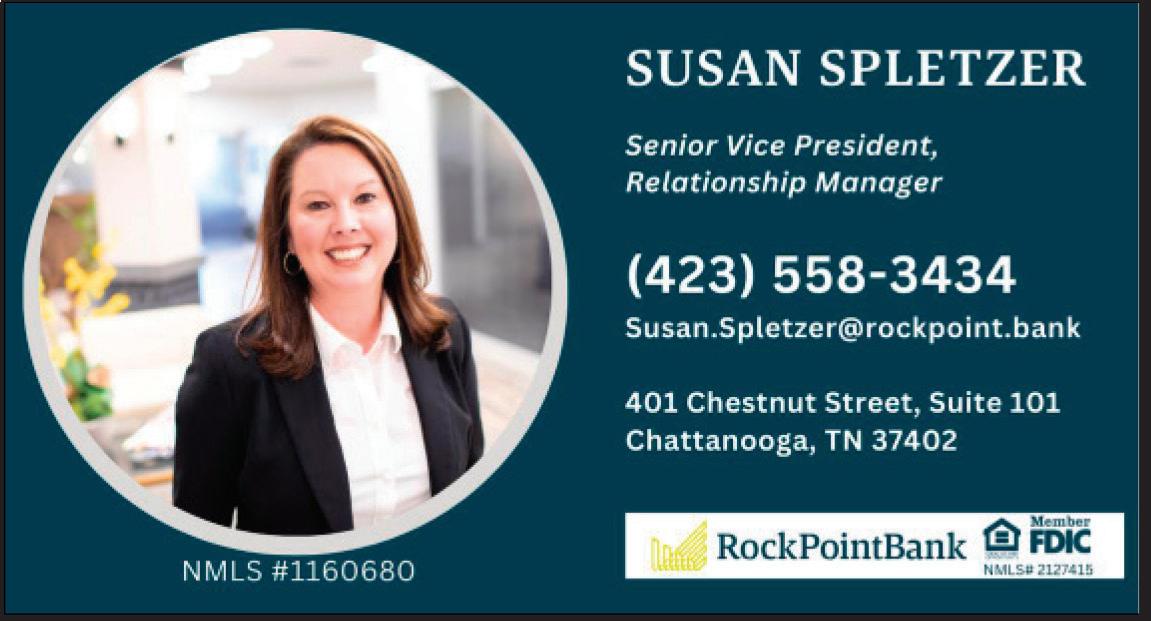 Signal Mountain, a peaceful suburban town is known for wooded hiking trails leading to serene lakes, waterfalls, and overlooks like Signal Point, with views of the Tennessee River. The area’s thriving arts scene includes openair summer plays and musicals at the Signal Mountain Playhouse, and the Mountain Opry, which stages bluegrass concerts in a nearby community hall. Liane Carullo c: 423-991-1705 o: 423-752-0188 liane@fbright.com www.fletcherbrighthomes.com Convenient location with amenities such as a resort style pool with cabana, firepit, fitness room, grilling area, and newly remodeled penthouse clubhouse with views of Downtown Chattanooga and the TN River.