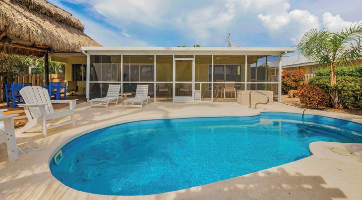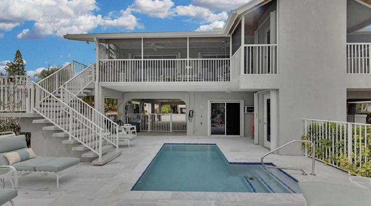 1,950 sq. ft., 2 bedroom, 2 bath home and 536 sq. ft. 1 bedroom, 1 bath guest house sit on .81 fenced acre. Amenities include poolside tiki with outdoor cooking, 483 ft. pier to docking facility with boat lift.