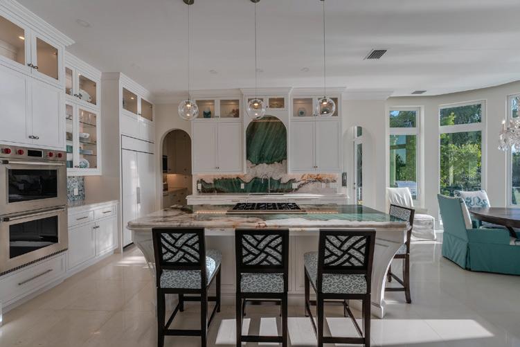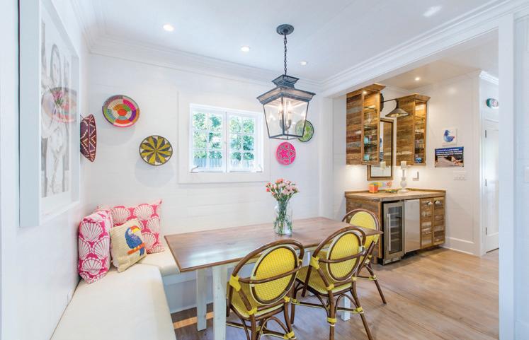 custom kitchen with built in banquette and coordinating bar with ice maker