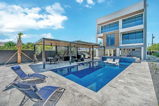 indoor/outdoor living with custom door wall and sliders detached poolside cabana and off-street parking
