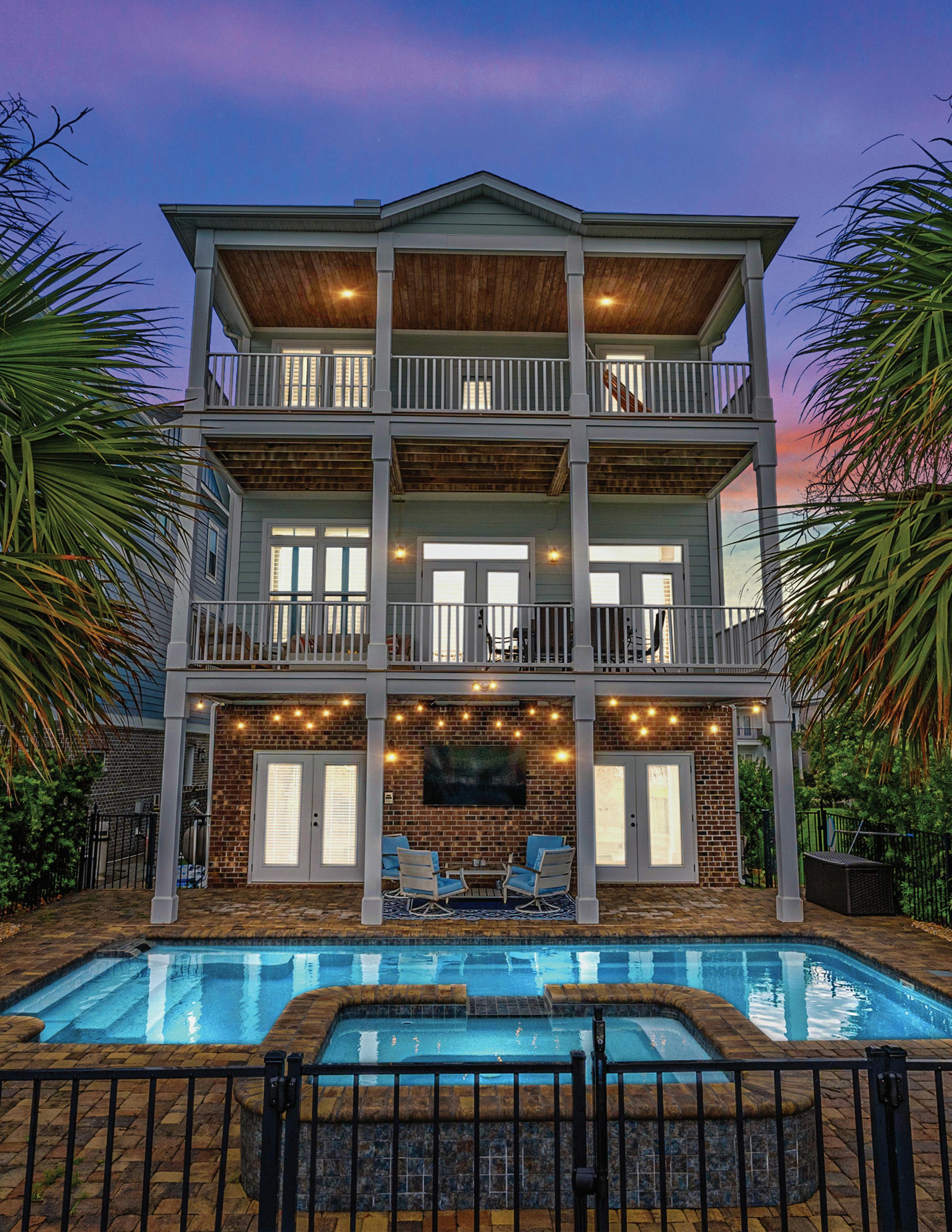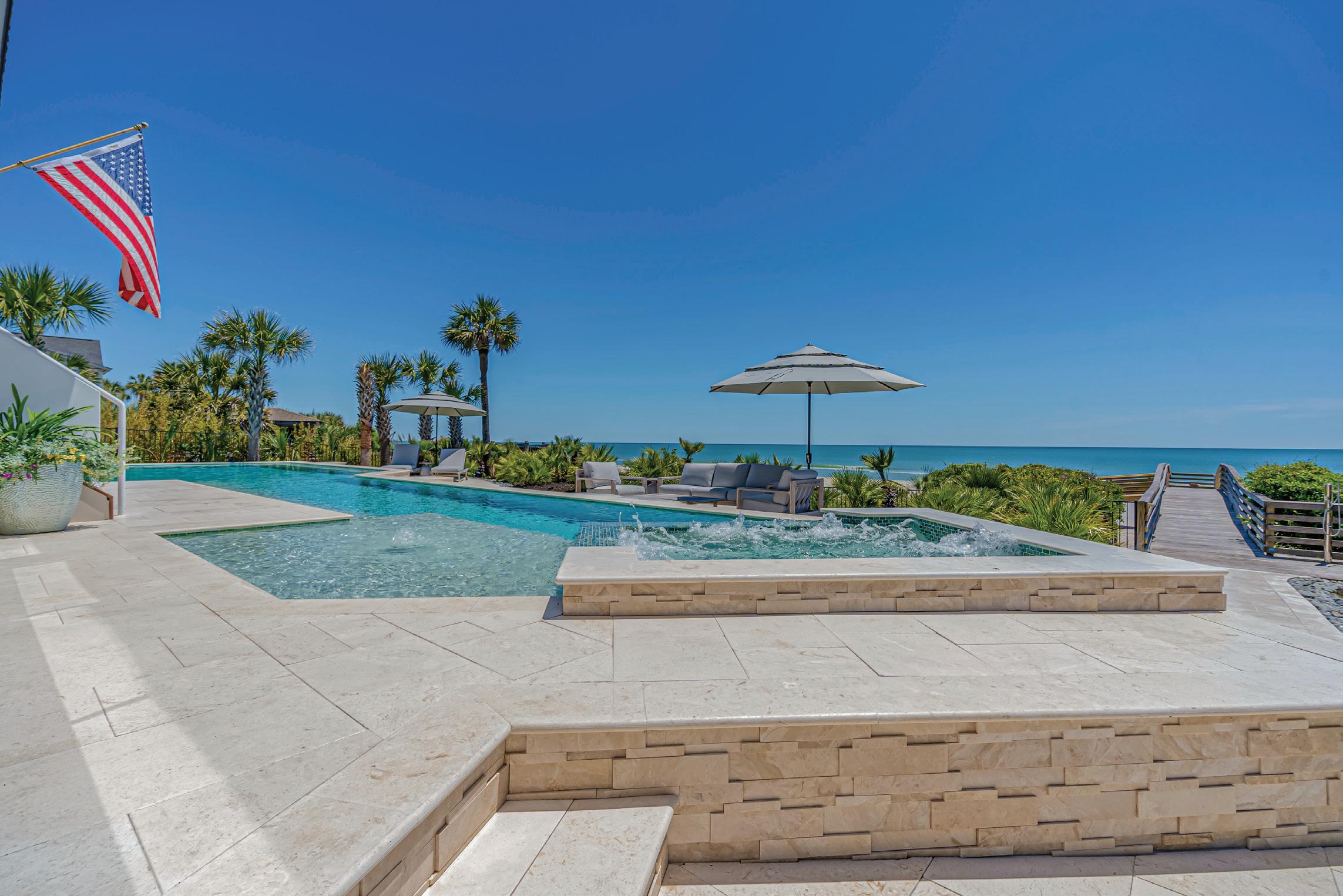 This magnificent, almost 9000 sq. ft. residence is crafted with extraordinary attention to detail inside and out, offering sweeping ocean views from multiple vantage points throughout the home. Updated and renovated to bring the trends into 2026, must-see kitchen and master bedroom/bathroom enhancements. Come through the gates and try to take it all in...the mature landscaping with gorgeous like oaks, the ocean breeze and salt air, and the peaceful sound of the waves, a few steps from your backyard. Step onto the welcoming front porch and into an impressive foyer that opens to a great grand room featuring floor-to-ceiling custom windows, built-ins, and a gas fireplace. To the left, a spacious office showcases custom cabinetry, wainscoting, and exquisite crown molding. To the right, a formal dining room comfortably seats twelve perfect for entertaining, holidays, and family gatherings. The gourmet kitchen is a chef’s dream, complete with custom cabinetry, beautiful quartz countertops, expansive prep space, and premium stainless-steel appliances, including a warming drawer, Sub-Zero refrigerator, and Thermador gas range. The adjoining keeping room offers ocean views and easy access to the homes outdoor living spaces. An elevator or elegant staircase provides access to all levels. The second floor features a loft with ocean views and a split bedroom layout. Each bedroom opens onto a generous balcony overlooking the backyard and the Atlantic beyond. The top floor is designed for entertainment and comfort, boasting a stunning media room with surround sound, theater lighting, and a retractable screen ideal for movie nights or game days. A card table area and a convenient kitchenette make this level perfect for guests or a mother-in-law suite, complemented by two additional bedrooms. Could also be a perfect spot for a private gym! Perfectly situated on the largest rear lot in the Dunes Oceanfront area, this estate is a rare offering experience the best of coastal living in one of the area’s most premier locations. $3,975,000