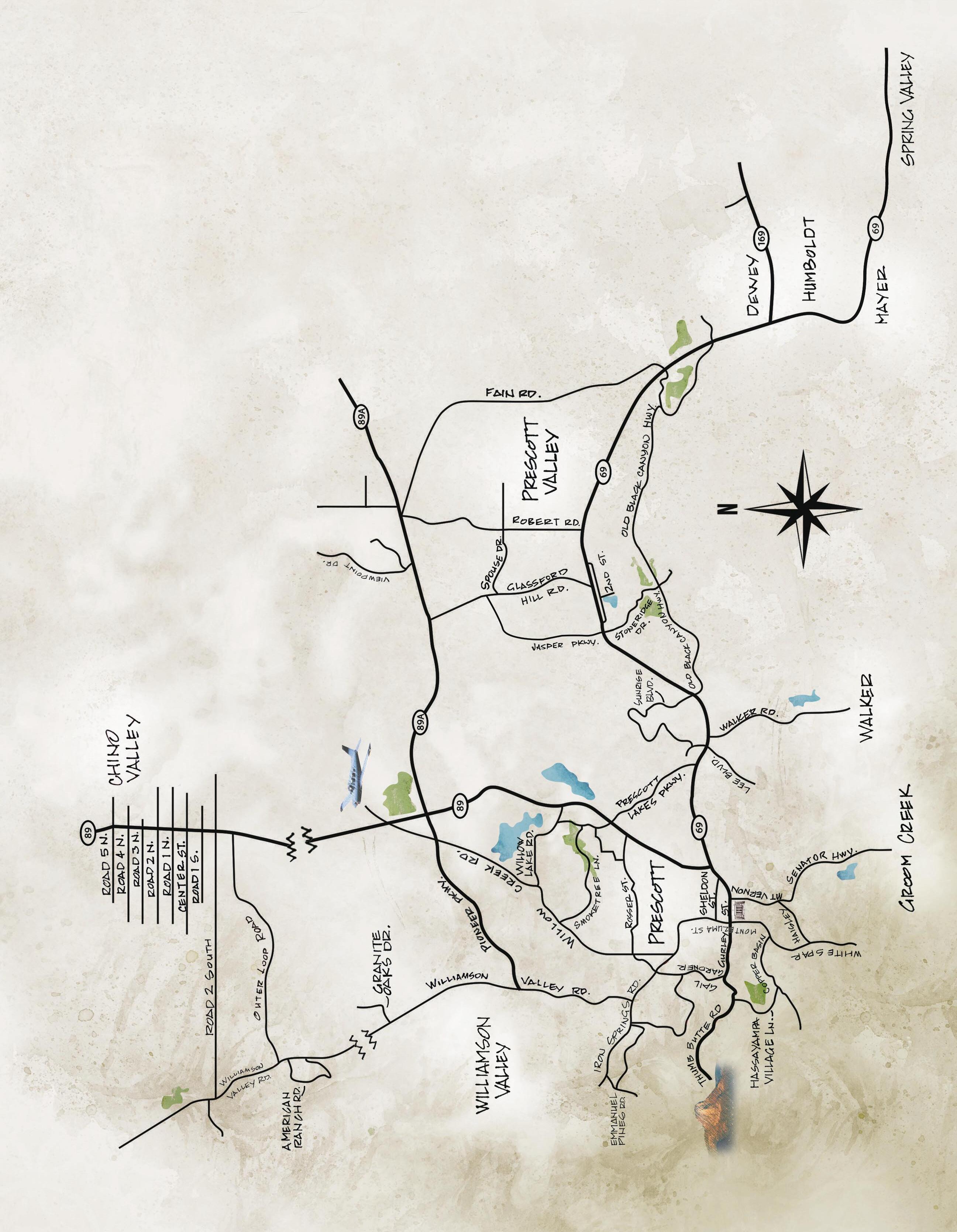 PRESCOTT 1. Las Vegas Ranch Estates 2. Crossroads Ranch 3. Talking Rock Ranch 4. Long Meadow Ranch 5. Inscription Canyon Ranch 6. Whispering Canyon 7. The Preserve at The Ranch 8. Williamson Valley Ranch 9. American Ranch 10. Royal Oaks 11. Granite Oaks 12. Golf Links Subdivision 13. Pinon Oaks 14. Fairfield Estates 15. Southview 16. The Gardens 17. The Canyons 18. The Reserve 19. Willow Hills