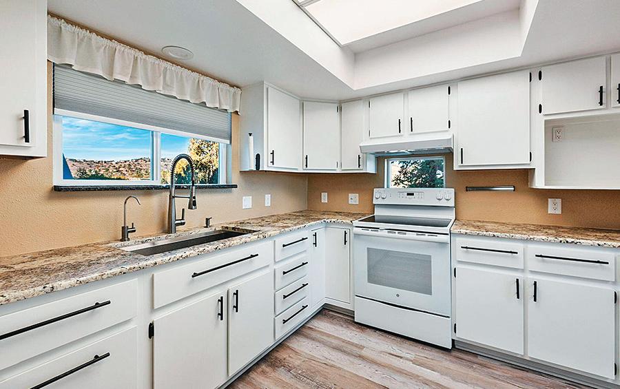 Very dark floors and high-gloss cabinetry tend to highlight dust and fingerprints. Matte finishes, mid-tone woods, and subtly patterned materials conceal normal wear and maintain a polished appearance between cleanings — especially important in Prescott’s four-season climate.