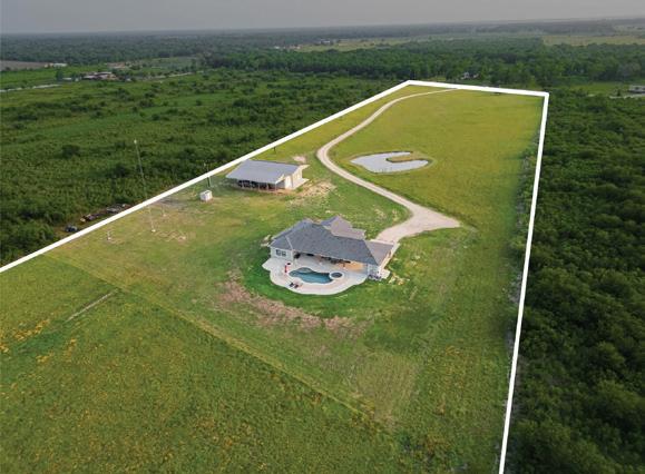 Stunning custom-built home by AG Custom Homes set on 15.85 unrestricted acres, with 12 acres currently under AG Exemption! 3/2.5 home includes office, game room, 10-ft ceilings, open-concept kitchen, living and dining area, all with concrete floors. Kitchen with farmhouse-style sink, SS appliances & 42” cabinets, granite counters and stylish finishes. Relax in pool, hot tub, outdoor shower & exterior half bath. 60x40 metal shop features epoxy floors, LED lighting, 10 porch, 16 ft sidewalls, 12x12 roll-up door, 200-amp service, 15kW SOLAR setup, plumbed for sink & 1/2 bath, 2 RV septic drops, water/internet to shop.