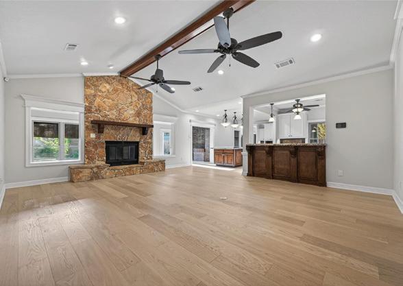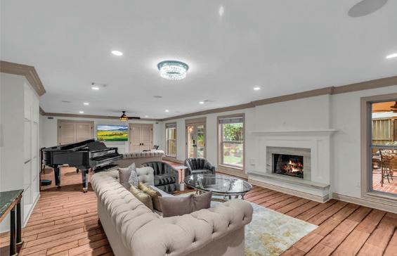 Inviting home offers an open floorplan. 4/2.5 & custom office with optional 5th bdrm! Chef’s kitchen features approx 10’ x 5’ granite island, custom cabinetry w/pot drawers, under-cabinet lighting, roll-top appliance storage, & full Bosch appliance package including induction cooktop, wall oven, microwave & warming drawer. Family room showcases wood ceiling beam, crown molding throughout, recessed lighting & gaslog fireplace w/wood mantel & stone surround. Primary suite features wood floors, sunroom access, and a spa-like bath w/dual vanities, frameless glass shower, bidet w/heated toilet seat.