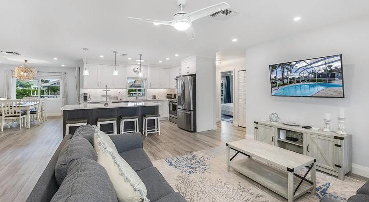 This coastal dream home has been completely renovated and offers spectacular long southern lake and golf course views. The oversized screened lanai is a true showstopper.