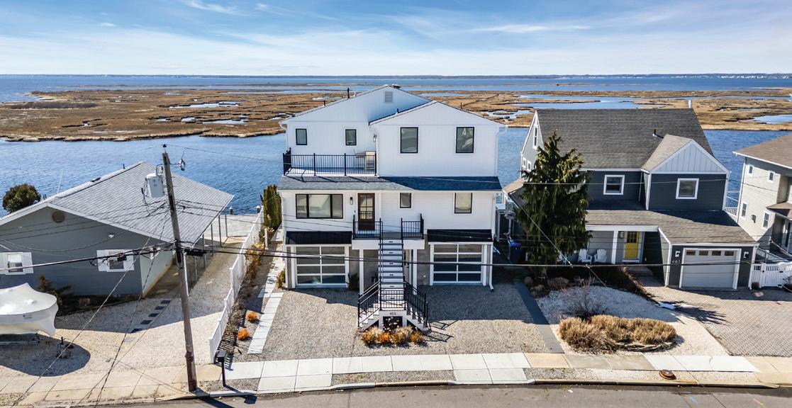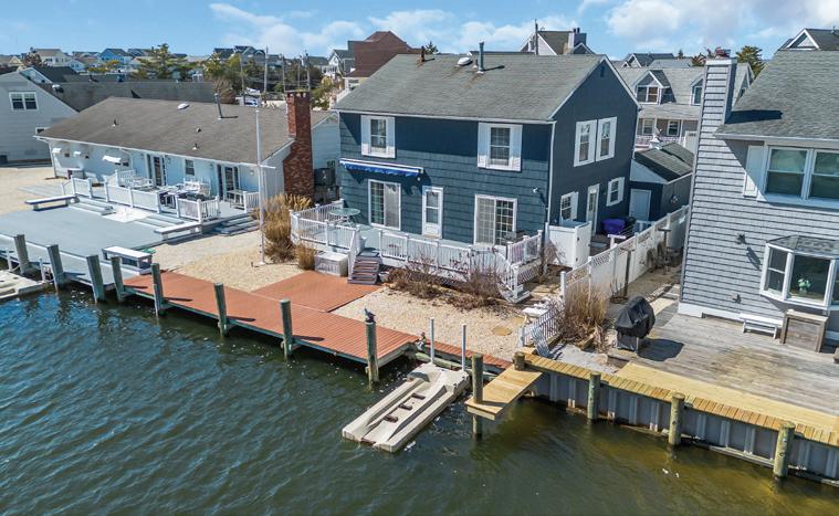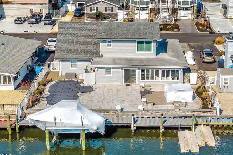 LAVALLETTE - CHADWICK BEACH TR Twp. This post-Sandy home sits one house from the open bay, offering 65’ of vinyl bulkhead w/ cantilever dock and sunset views. 5 BRs, 3.5 baths, bright open floor plan w/ 9’ ceilings, LR w/ gas frpl, gourmet kitchen. Outdoor oasis with pavers, bluestone patio, island, grill, and awnings. $2,415,000. Barbara Montone 201-404-6101