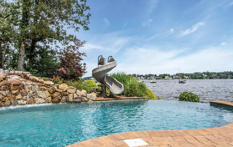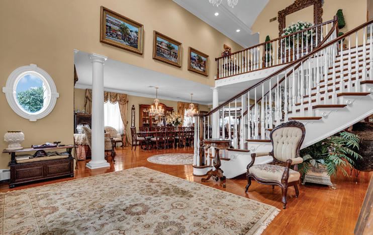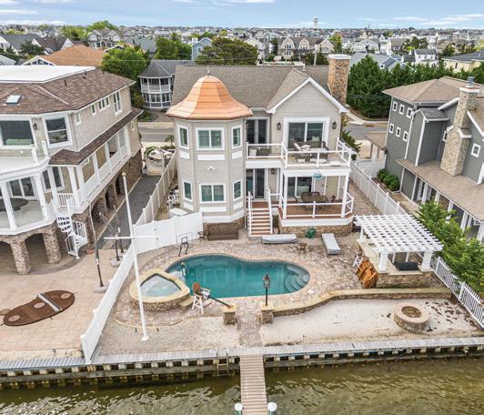 TOMS RIVER An extraordinary opportunity to own a oneof-a-kind custom estate on the Toms River, offered for the first time. Featuring 5 beds, 5 full and 3 half baths, this residence includes a soaring foyer with grand staircase and chandelier, formal dining with circular bar, a dramatic great room with river views, and a gourmet kitchen with cherry cabinetry, granite counters, and commercial-grade appliances. Enjoy hardwood flooring throughout, an elevator, chair lift to garage level, and a formal living room overlooking the water. Additional bedrooms include private baths and balconies. Outside, entertain with multiple decks, two gazebos, a dock with bulkheading, and a spiral staircase imported from the Eiffel Tower. Professionally landscaped with a paver driveway, 2-car and 1-car garages, and storage shed. An additional home is also available at 33 Brooks Road—offering a rare chance to create a multihome family compound or guest residence. $3,525,000. Mark Kotzas 732-244-4900