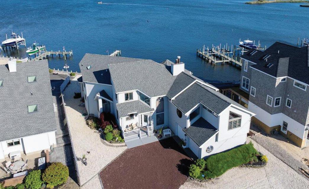 ORTLEY BEACH 52’ bulkhead w/ two 30’ docks. Built in 2018 and thoughtfully designed to maximize enjoyment in this prime cove-front setting, 5 BR, 3.5 BA boasts multiple decks, open floor plan anchored by oversized glass doors and walls of windows that frame ever-changing water views. 10-ft ceilings & transom windows throughout create an open, airy feel. $2,400,000. Laurie Enoch cell 732-691-0681