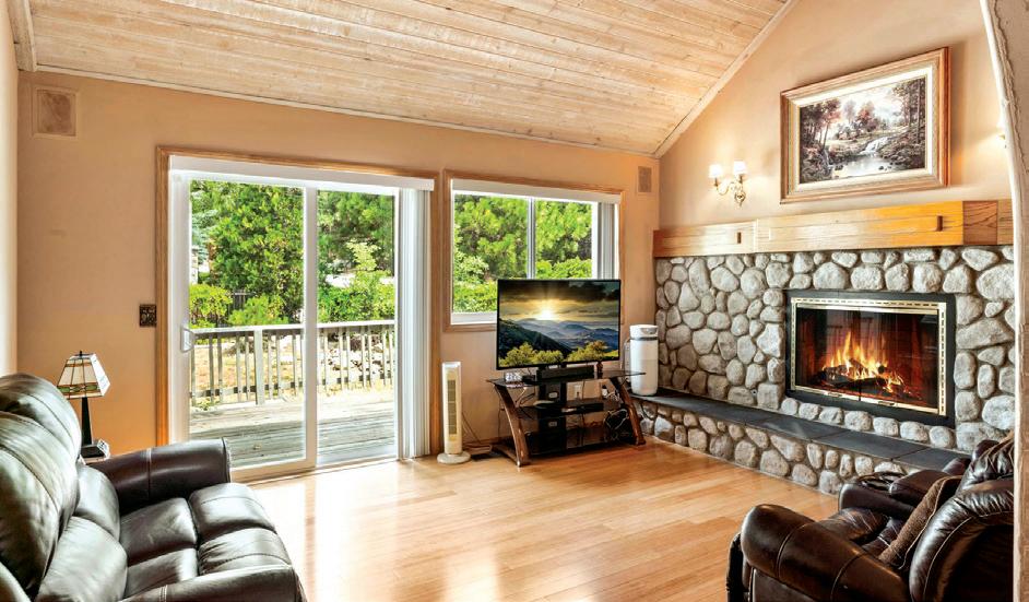 In Lake Arrowhead Villas. Tucked beneath a canopy of soaring redwoods, this recently renovated and fully furnished home blends rustic charm with modern design in a way that feels both timeless and fresh. With 3 bedrooms and 2 full baths, the cabin is offered turnkey and move-in ready - perfect as a private escape, vacation rental or full-time residence. The open-concept living space is centered around a dramatic floor-to-ceiling stone fireplace, with soaring wood-beamed ceilings and expansive prowstyle windows that flood the interior with natural light. $445,000