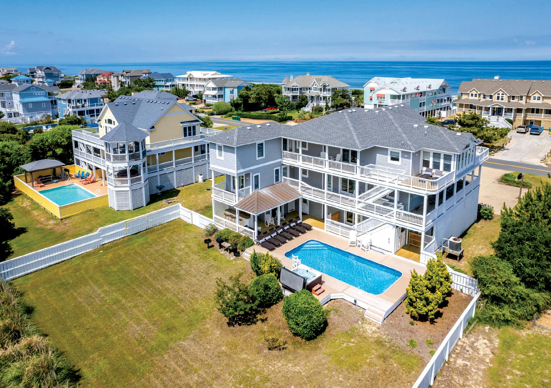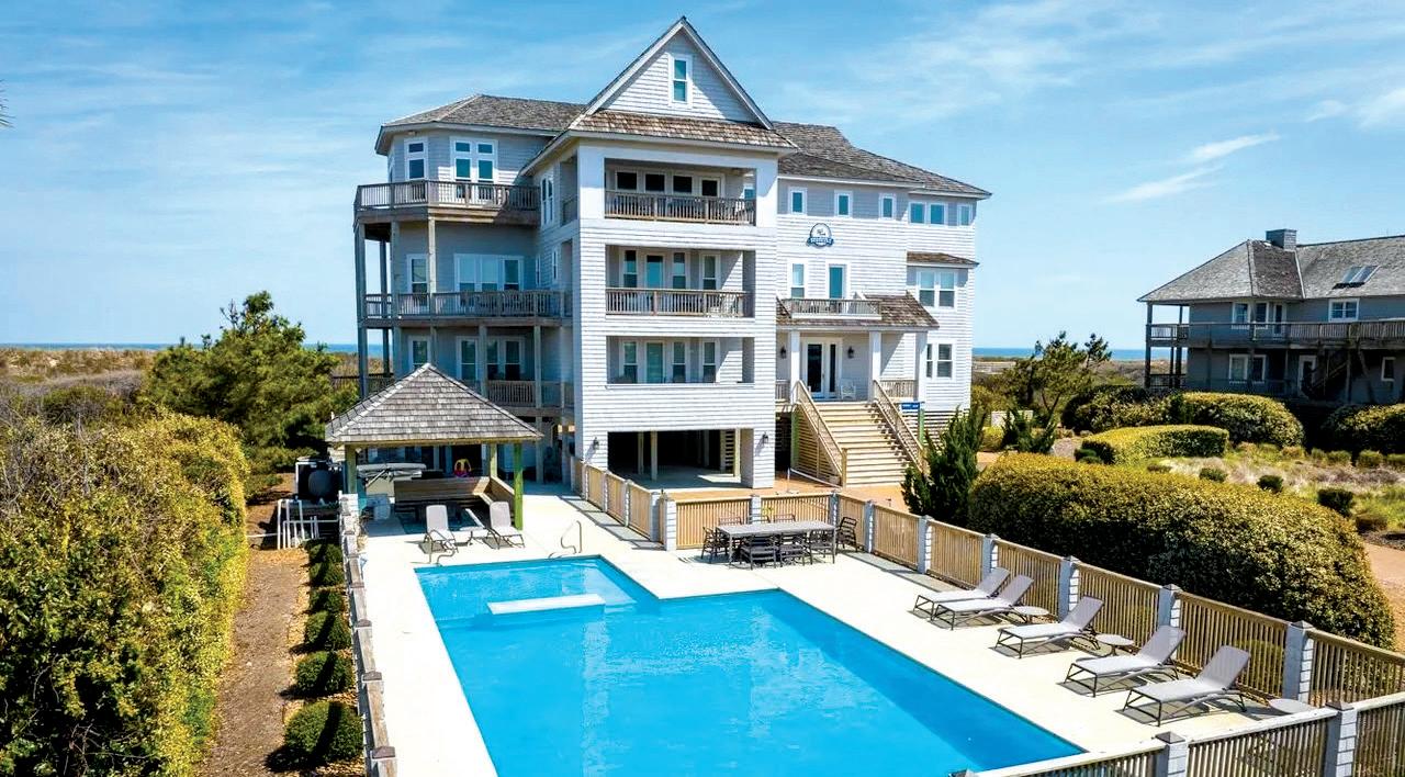 One of the most well-appointed and premier homes on the Outer Banks, this oceanfront estate is nearly 10,000 sq ft and was built in 2018 in the worldclass Palmers Island community. Already boasting OVER $700k in rental income for 2026, it is both an amazing investment and idyllic summer retreat. Already boasting $624K booked for 2026, few homes can match its income potential, privacy, and unobstructed ocean-to-sound views. Situated on over an acre with 150 feet of oceanfront, this pristine coastal retreat features 12 ensuite bedrooms, gourmet kitchen, theatre room, elevator, English Pub, game room, and a private heated pool with cabana, hot tubs, and expansive entertainment areas. Elevated over the dune with panoramic sunrise and sunset views, it’s no wonder this home won the Judges Award of Excellence and People’s Choice in the OBX Parade of Homes.