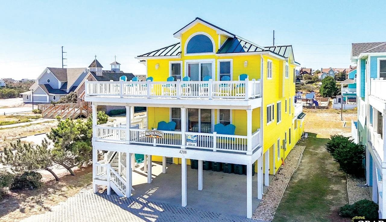 Located in the heart of Nags Head, Mellow Yellow offers fantastic wide ocean views, bright airy great room with plenty of windows to admire. Additional decking in front and back, private hot tub area and extended decking overlooking pool area.