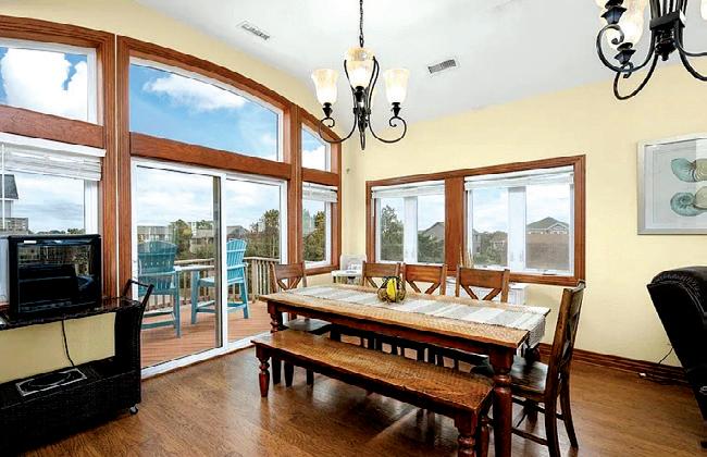 131815 WAVES | HEART OF HATTERAS 10-foot sliding glass doors that frame unforgettable sunsets over the sound.