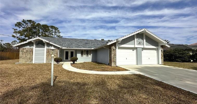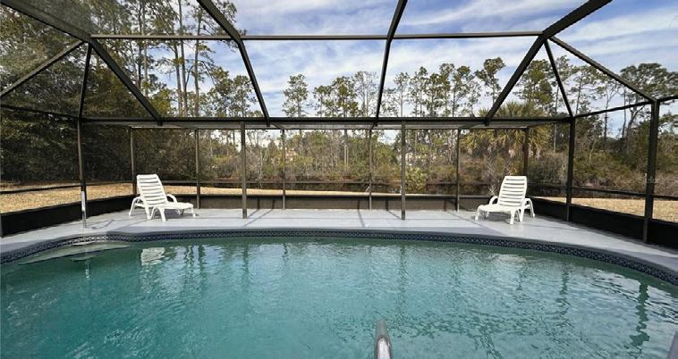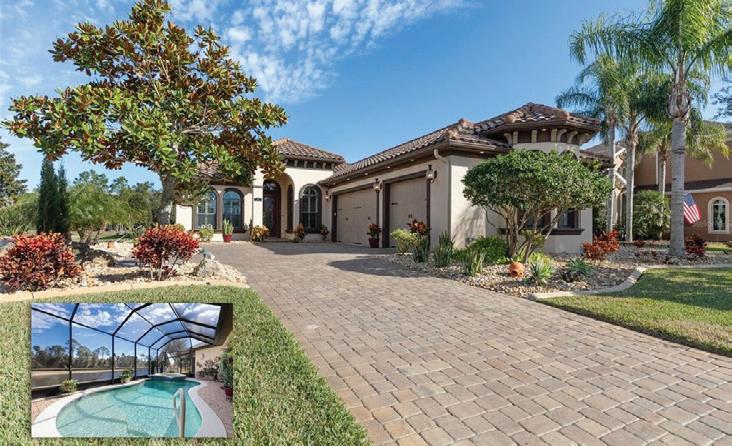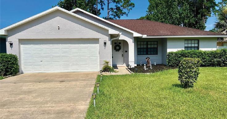 loft and balcony, plus resort-style amenities in a gated community. Roof to be replaced before closing. Asking $499,000 INDIAN TRAILS HOME Three - bed, two - bath home split plan, fireplace, fresh paint, resurfaced pool, new roof and AC, updated windows, and a large lot near schools, parks, and shopping—an exceptional value in Palm Coast. Asking $310,000 ELEGANT 3-bed, 2-bath Hidden Lakes home with gourmet kitchen, quartzite counters, coffered ceilings, screened porch, private preserve view, oversized A/C - equipped garage, whole-house generator hook-up, and community pool, pickleball, playground, and clubhouse. Attractively Priced at $525,000