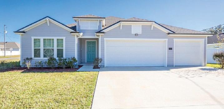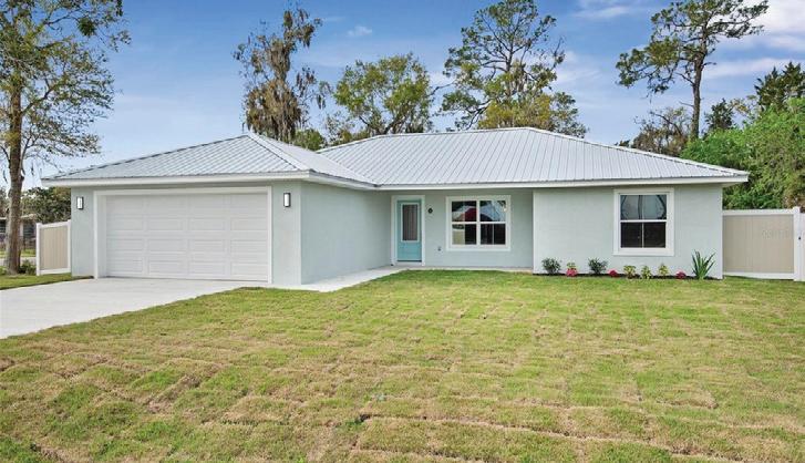 BRAND NEW HOME in Bunnell! This beautifully constructed 3-bed, 2-bath residence on a corner lot natural charm and modern living. Inside, the open-concept layout features luxury vinyl flooring and bright recessed lighting. The kitchen showcases granite countertops, dark shaker cabinets, and S/S appliances. The primary suite includes a walk-in closet and a stunning en-suite bathroom with custom tiles. Enjoy outdoor living with covered porches and a fenced backyard. NEAR Flagler Beach! $319,900.