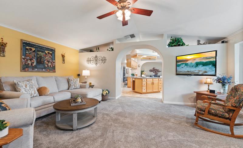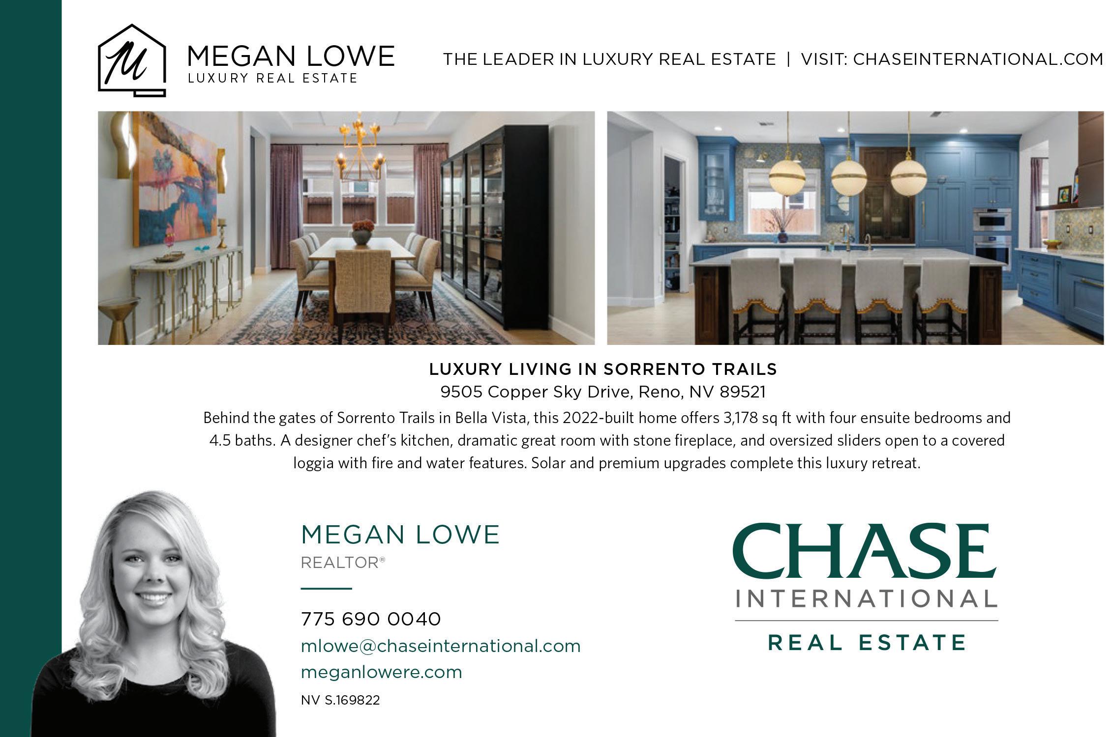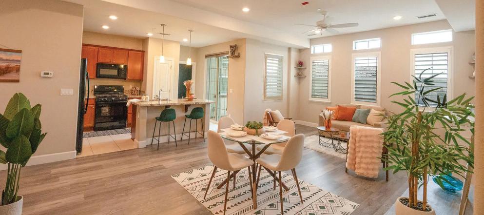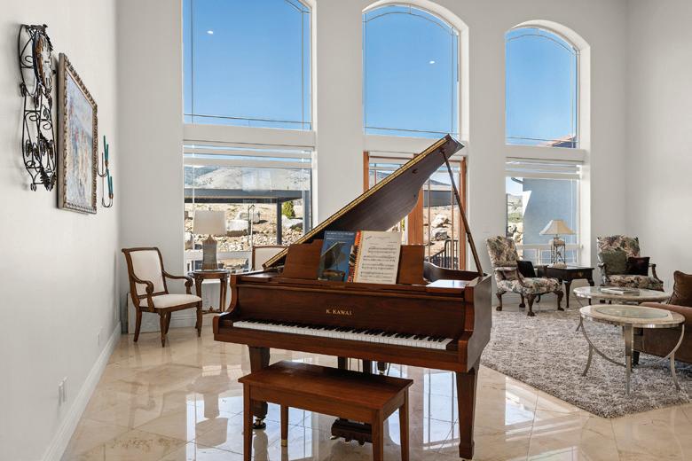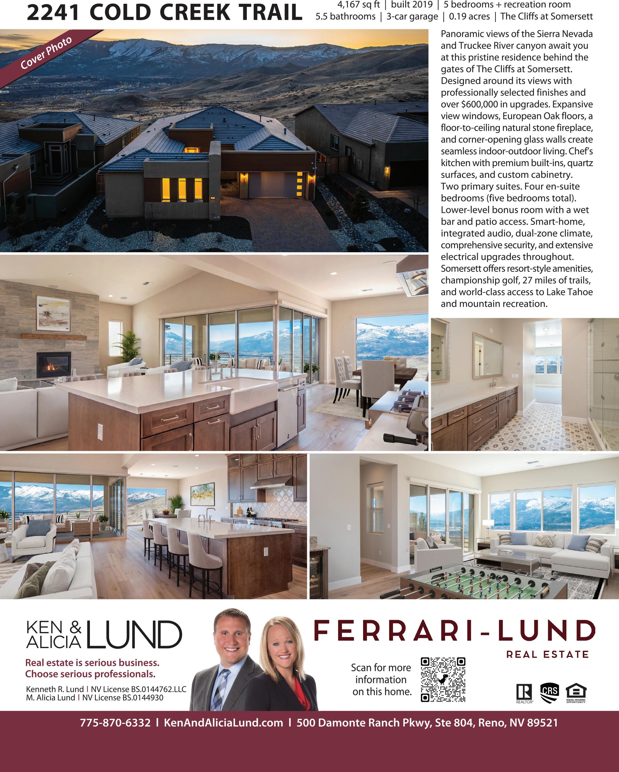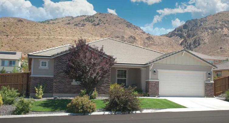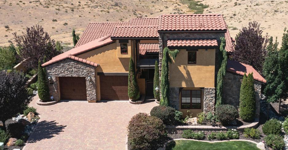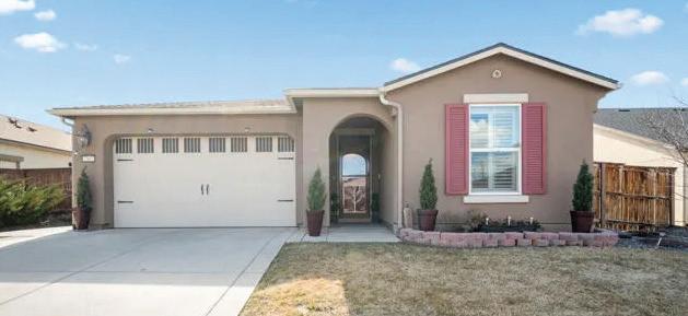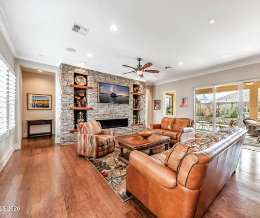 Highly upgraded home in the gated 55+ community with beautiful Mt. Rose views. Situated on a premium corner lot with gorgeous landscaping, this home shows like a model and offers a thoughtful- ly designed floorplan for comfortable living and entertaining. The open layout features a spacious great room and dining area that flow into a expanded covered patio, creating seamless indoor-out- door living. The chef’s kitchen with 2 large islands and breakfast bar opens directly to the main living space. Wood floors, crown molding The flexible floorplan includes 2 bedrooms, 2.5 baths, and a detached flex room, perfect for a home office, hobby room, movie room or additional guest space. The private primary suite features a spacious bath, expansive shower, his & hers vanities and dual walk-in closets. $1,250,000