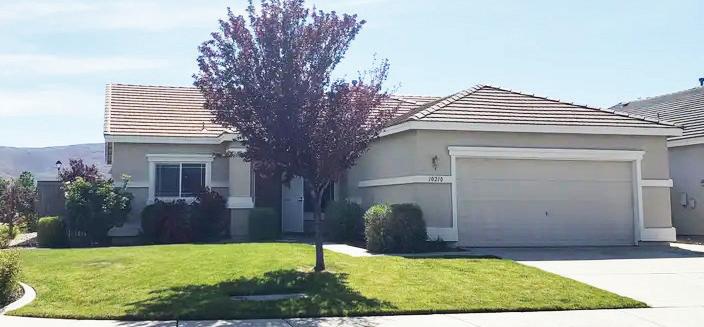 IMMACULATE SINGLE STORY home on a quiet corner lot in Double Diamond. Beautifully landscaped, private backyard with expansive patio space covered by two pergolas—ideal for outdoor living. Open kitchen features mountain views, light wood cabinetry and upgraded appliances, including Bosch dishwasher and gas range. High ceilings and abundant natural light throughout. Hard-surface flooring in high-traffic areas with plush carpeted bedrooms. Living room offers gas fireplace and surround sound. Additional highlights include central A/C, two-tone neutral interior paint, numerous ceiling fans, concrete tile roof, and stucco exterior. Refrigerator, washer, and dryer included. Zoned for Double Diamond Elementary, Depoali Middle, and Damonte Ranch High School. Near two parks, shopping, medical services, dining, and with easy access to Veterans Pkwy and I-580. $599,000