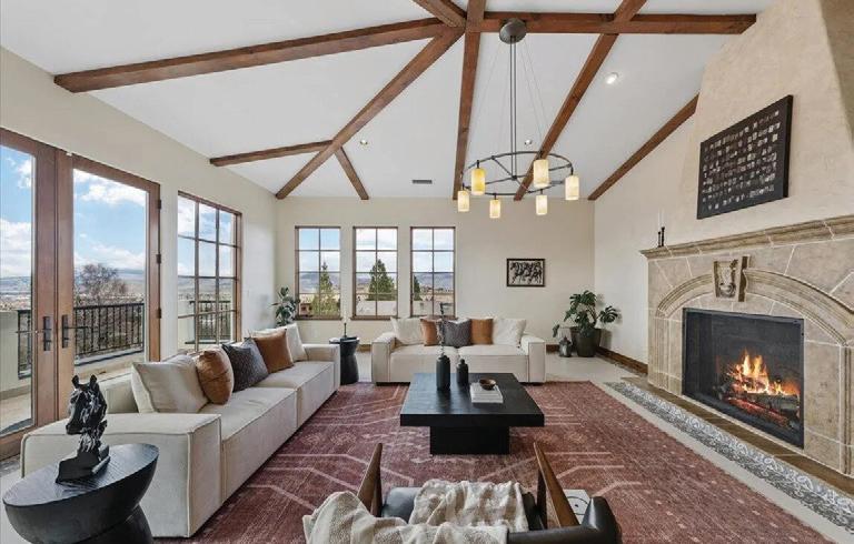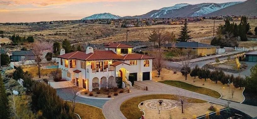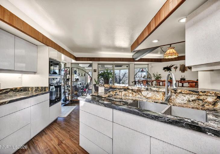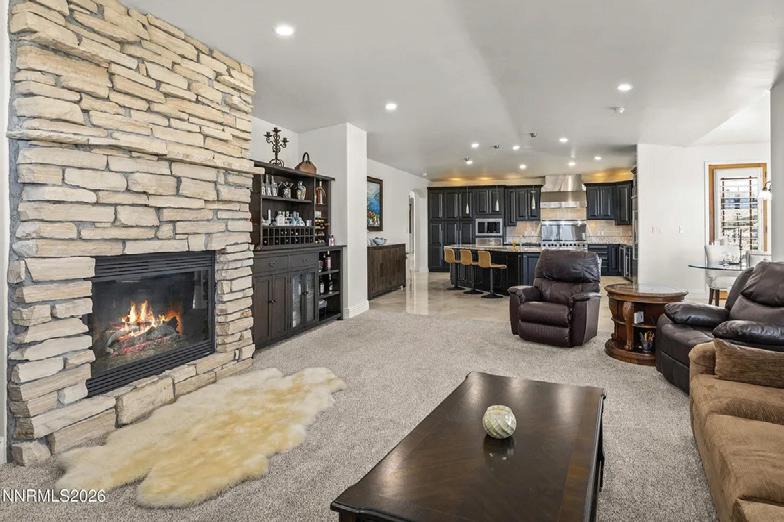 Set on nearly an acre in one of South Reno’s most desirable areas, This elegant 5,199 square foot home offers grand living spaces, stunning Mount Rose mountain views, and a thoughtfully designed floor plan ideal for both everyday living and entertaining. A dramatic marble tile entry welcomes you into the home, where soaring ceilings and expansive windows frame beautiful mountain vistas. The main level features a formal living room and formal dining room, perfect for hosting gatherings or special occasions. Two fireplaces add warmth and character, including one in the master suite. Thoughtful upgrades throughout include 23 newly installed windows, new carpeting, upgraded LED lighting, modernized switches and outlets, and custom shades. Expansive windows throughout the home flood the interior with natural light while framing stunning views of the surrounding mountains. The updated kitchen is designed for the serious home chef, featuring professional-style appliances, a generous workspace, and a layout that flows seamlessly into the home’s main living areas. The spacious main-level primary suite is a true retreat, complete with a cozy fireplace, spa-like bathroom featuring a sunken soaking tub, a stone walk-in shower, two vanites and two walk-in closets.