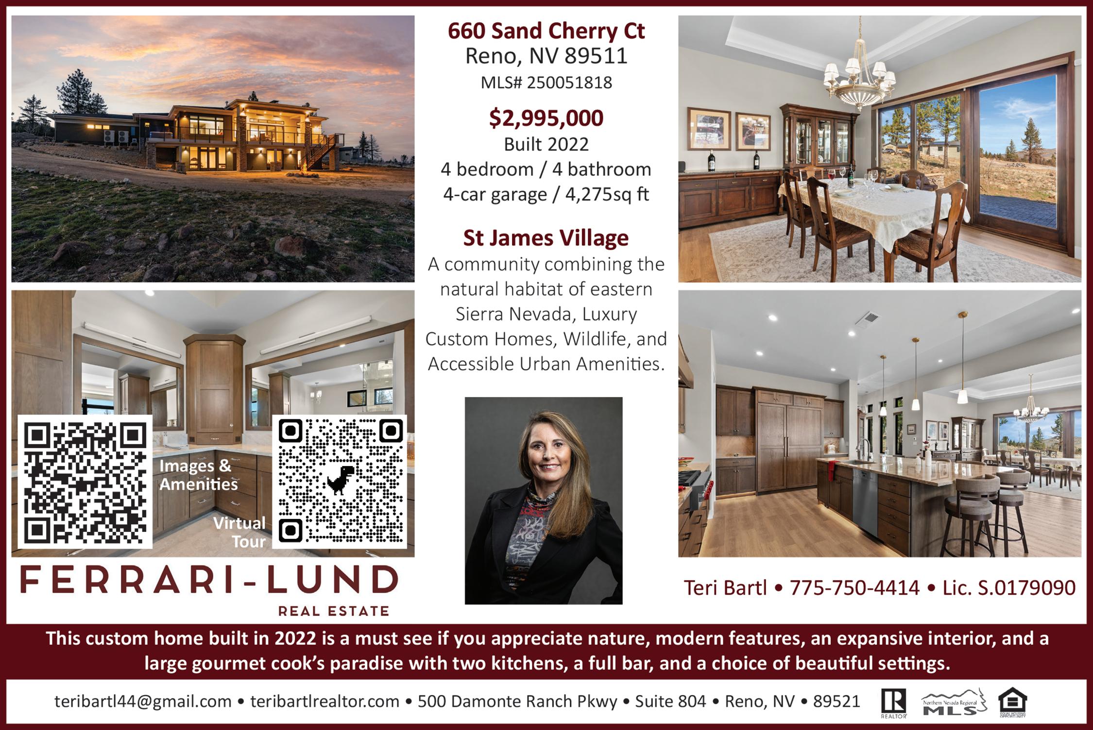 NESTLED IN A PRIME, PEACEFUL SETTING just minutes from Reno, Lake Tahoe, and Mt. Rose Ski Resort, this breathtaking mountain retreat is on .68 lush acres with local mountain views. The main-level primary suite offers ease and elegance, while a second ensuite bedroom creates a true private sanctuary. Oversized 2 car garage. $1,100,000