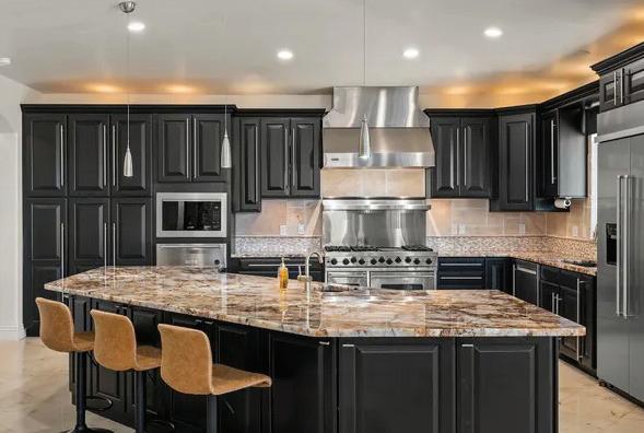 and a striking leathered granite waterfall island.The primary suite is a true retreat, offering a spa-inspired bathroom complete with a waterfall showerhead and an expansive walk-in closet with custom built-ins. A junior ensuite provides comfort and privacy for guests. $1,160,000
