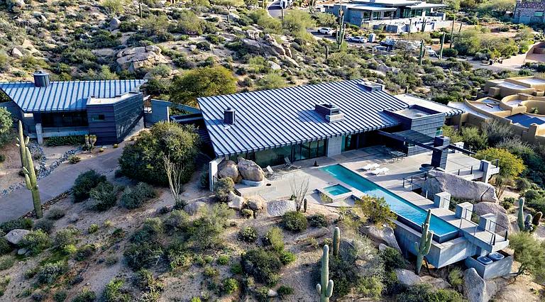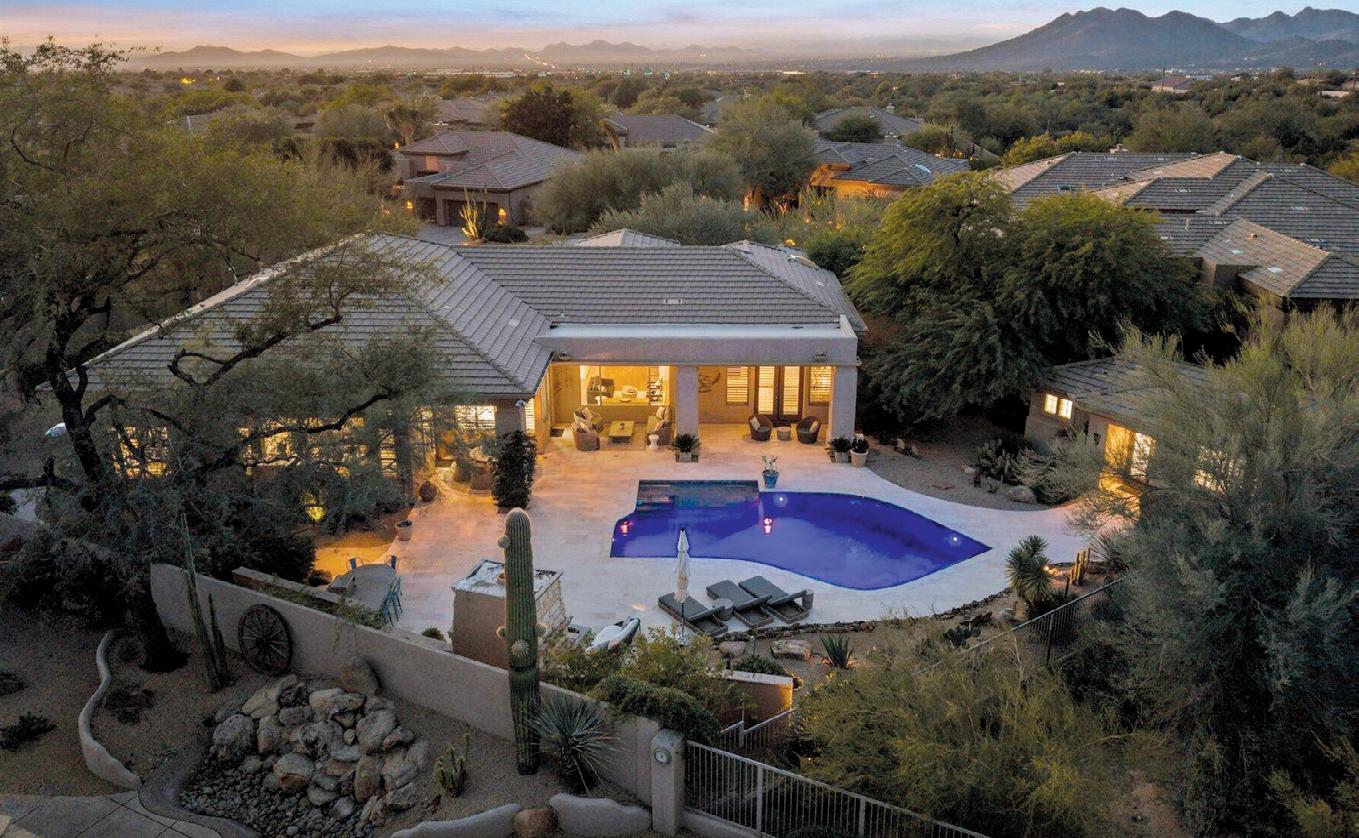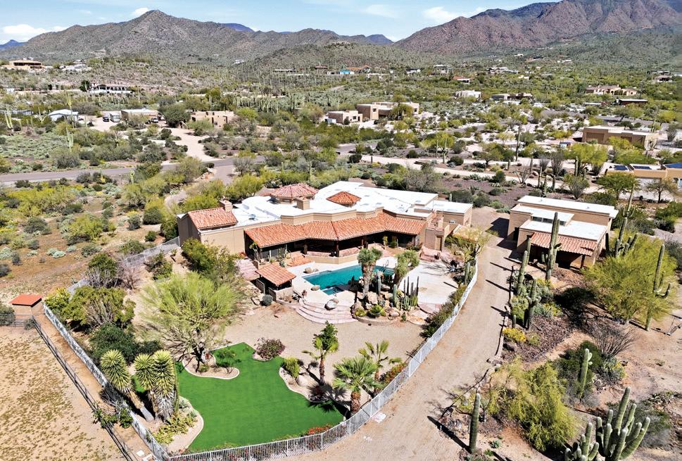 This exquisite single-level residence offers an exceptional blend of luxury, comfort, and refined modern living. The main house and casita provide 3,671 SF on an impressive 15,532 SF cul-de-sac lot that backs to open desert, ensuring serenity, privacy, and mountain views. A sophisticated layout defined by generous room sizes, flowing sightlines, and abundant natural light. 4 BR, 4.5 BA, office/den/optional 5th BR.