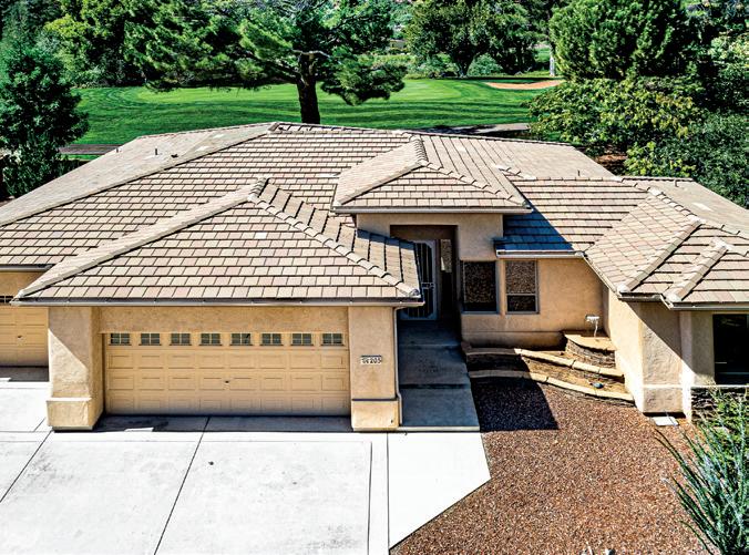 Nestled in Sedona and backing to the 17th green of the Oak Creek County Club, is the well maintained Southwest style home with 2 BR, 2 BA and primary BR with its own den. The split floorplan offers an open kitchen into the great room with FP. Back patio with its own fireplace.
