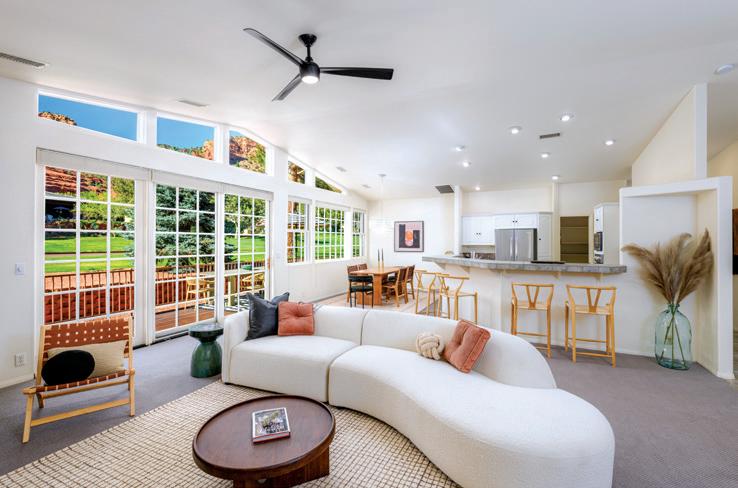 Experience a kind of paradise that only a Sedona golf course can provide! This custom-built residence commands sweeping views of emerald fairways framed by iconic Red Rock formations from your backyard. Unlike properties facing greenery alone, this home is advantageously positioned to enjoy Sedona’s glorious mountains from nearly every window. Upon entering the home you are greeted with a light and bright open interior, provided by the high ceilings and floor-to-ceiling windows. This residence boasts an ideal split floorplan with 3 bedrooms, 2.5 baths, 2.5 car garage (half-bay for your personal golf cart), 2,362 SF. With clubhouse dining, pickleball, and world class hiking in the Village of Oak Creek, serenity awaits you! $1,095,000