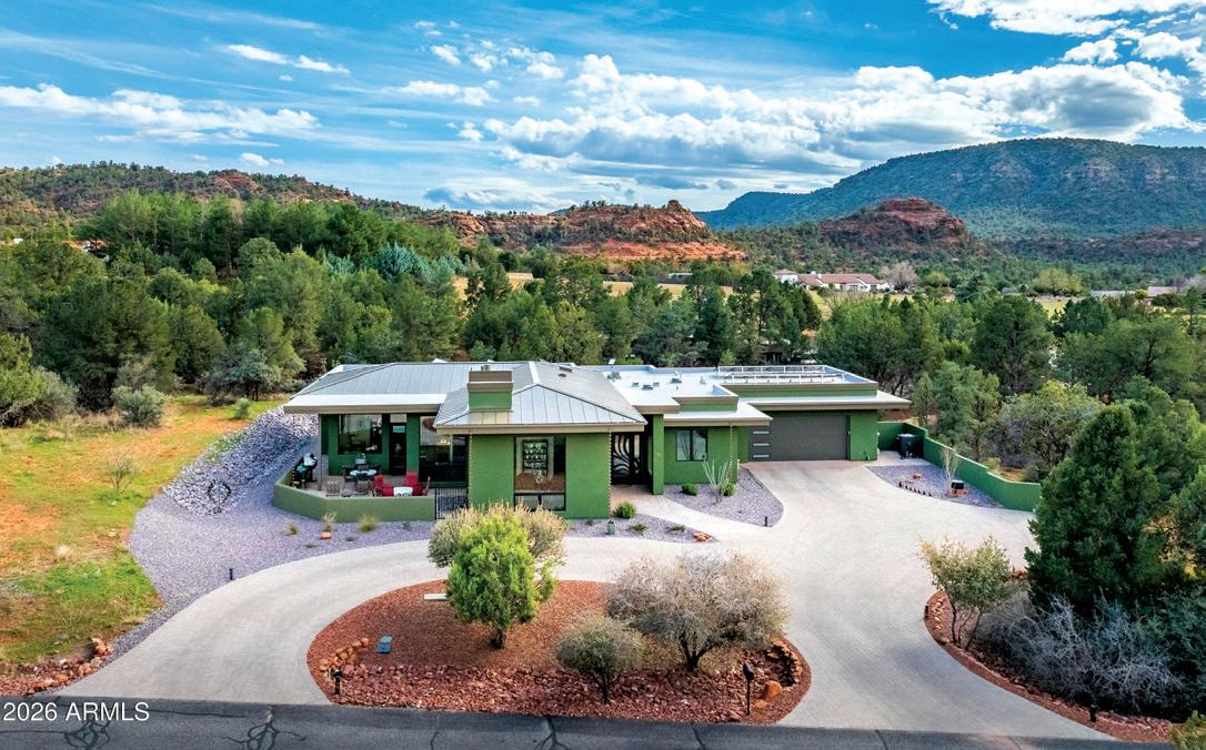 Privacy, sustainability, and stunning views—all just minutes from the heart of Sedona. Perfectly positioned on 3 acres this Southwest Contemporary design offers breathtaking Red Rock vistas and a serene, upscale lifestyle with easy access to world-class amenities. 5306 SF of luxury living in the main house and an additional 397 sqft in the casita. Solar system with battery storage and backup generator.