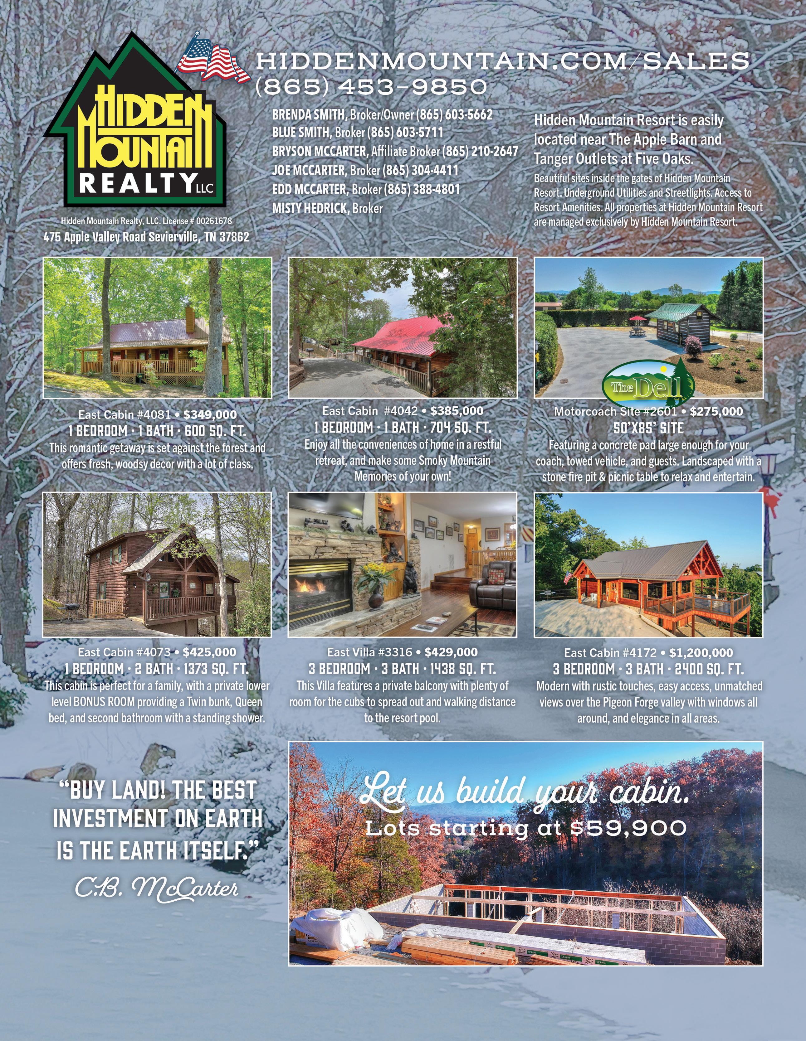 Why not come for a visit and see for yourself. Check out available rentals at www.SmokyMountainRentals.com or Request for your FREE 2026 guide today by email at kristina@homesandland.org.