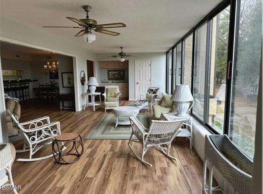 The open living room has patio doors to oversized screened in back porch