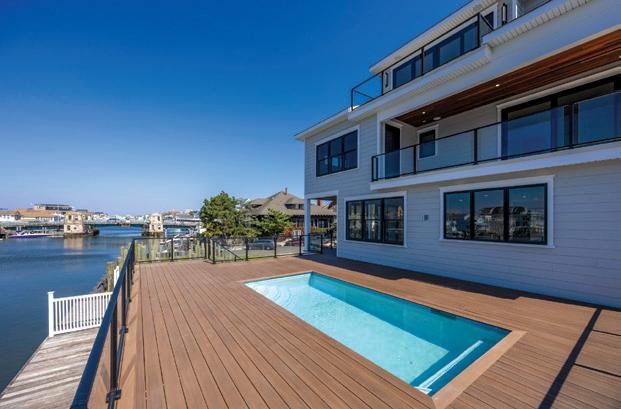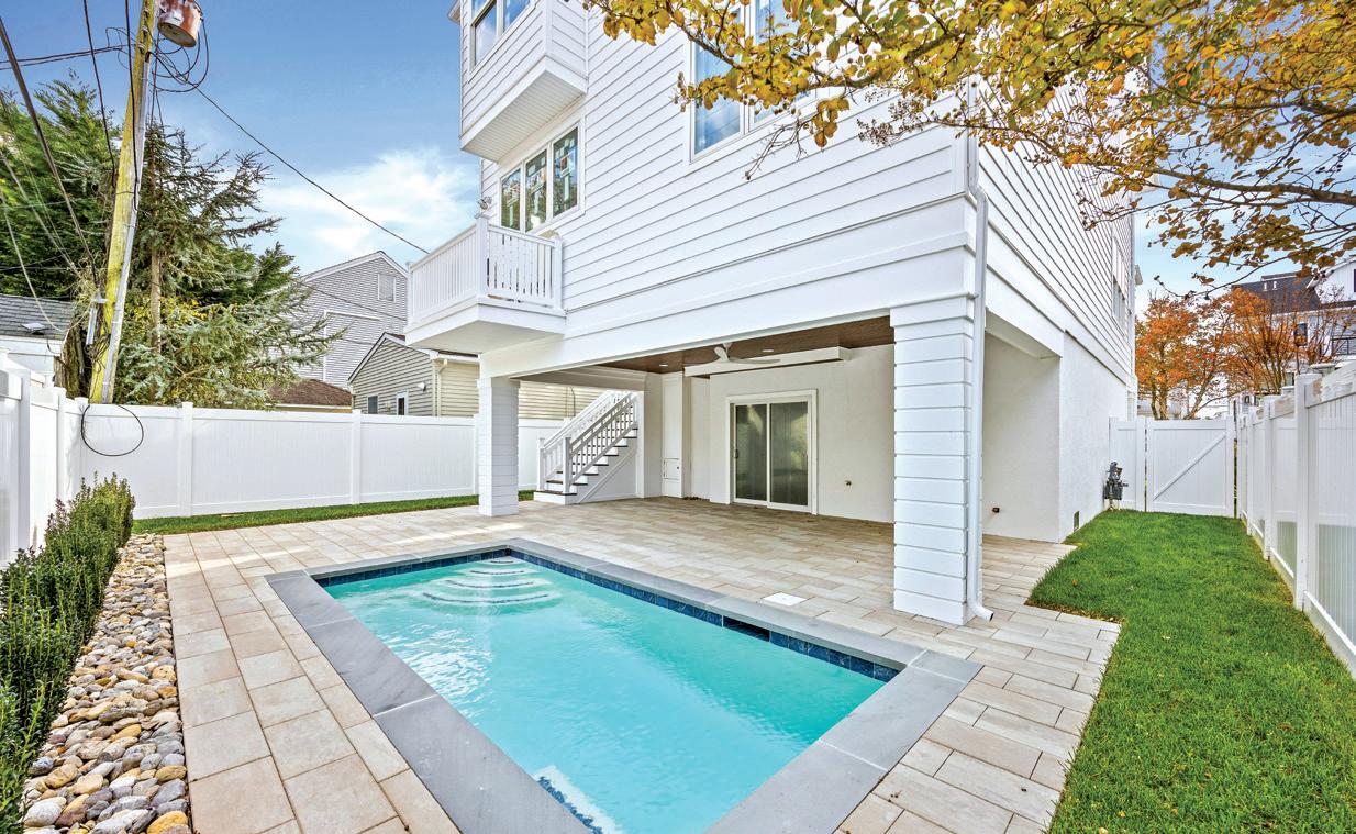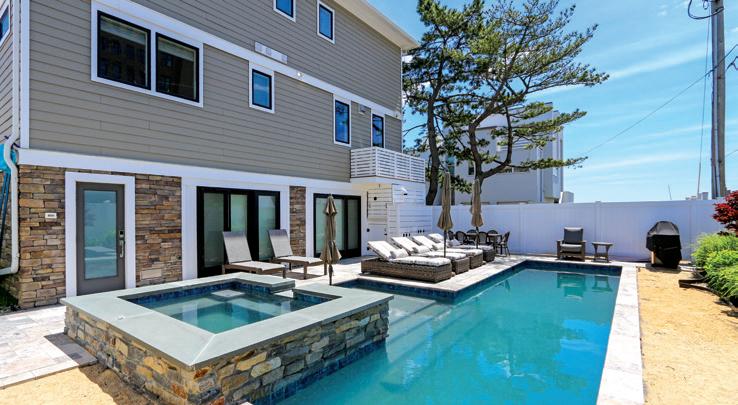 This brand-new four-story home combines modern luxury with relaxed shore living, featuring an elevator, wraparound decks, a private pool, and a two-car garage near the beach.
