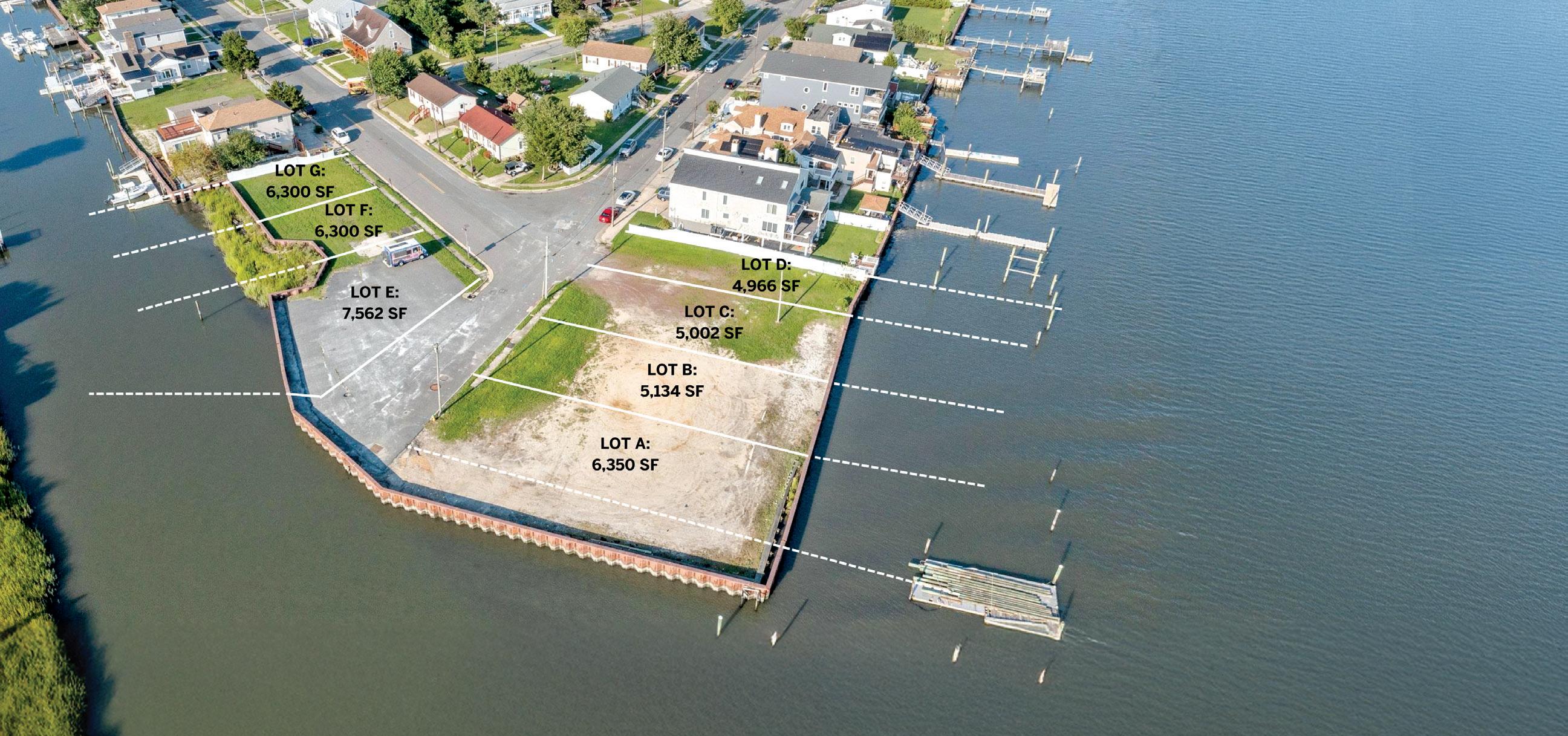Seven premium waterfront lots across two bayfront corridors. Available individually or as a combined package.