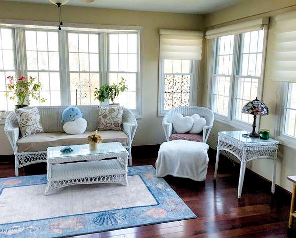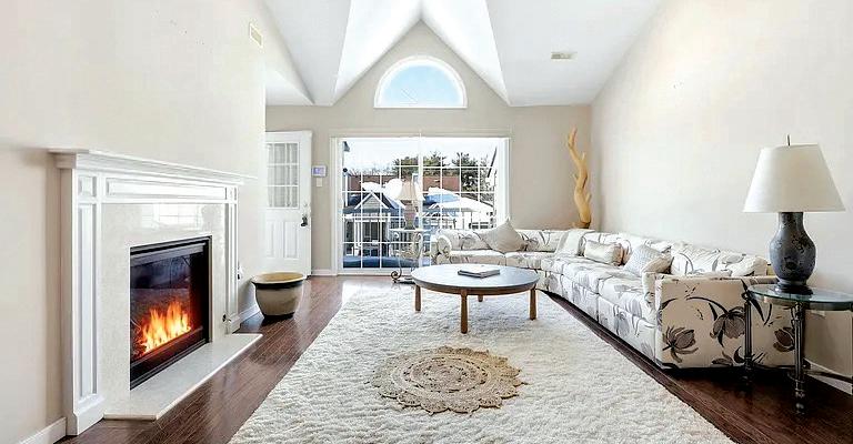 Remodeled 1st-floor end-unit condo w/ 2BR, 2 updated BA, granite kitchen w/ stainless appliances, living & dining rm, laundry rm w/ W/D, & bright sunroom w/ fireplace.