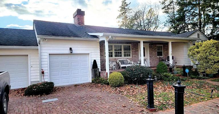 Updated ranch with spacious eat-in kitchen, renovated baths, primary suite, circle driveway, front porch, and fenced backyard for entertaining.