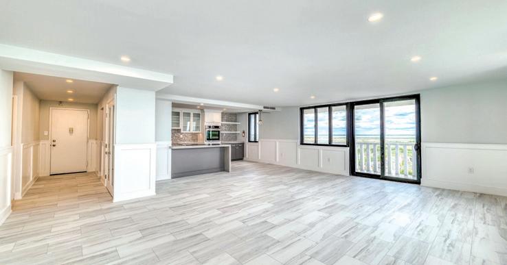 Designer-renovated 2 bedroom, 2 bath with ocean views, pool, gym, beach service, and turnkey living.