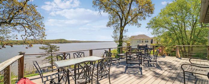 BUFFALO SHORES SOUTH WATERFRONT WITH 100 FEET OF SHORELINE! This doesn’t happen very often. This lake home has 3,194 s.f., two main bedrooms with large bathrooms on the first floor and three bedrooms on the second level with one having a private bath and the other two bedrooms share a pullman bath. The cheerful kitchen with a combined breakfast area overlooking Grand Lake, offers a subzero frig, one single range/oven, built-in oven and cooktopJ, wet bar area with a sink and ice maker, and tons of storage. There is a formal living and dining room with a sunroom with a view. Improvements made recently is a lakeside stone patio with outdoor fireplace, new 2-slip covered boat dock, new hvac, furnace, and entry drive. The roof is only five years old. This just might be your dream home! $800,000