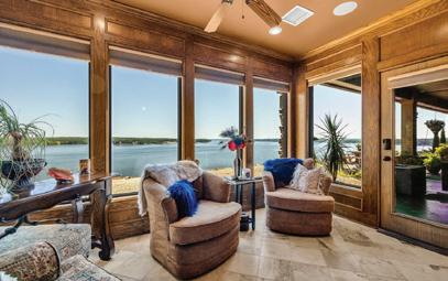 THIS EXQUISITELY DESIGNED FRENCH COUNTRY 4BR/5BA RESIDENCE is Stunning views of Grand Lake. The home is connected by an elevator and staircase, making it ideal for entertaining. 25-1338 $1,350,000 Roger Bond 918-231-9973