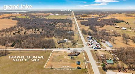 SPACIOUS 3BR, 2BA DOUBLEWIDE situated on 1.82 acres just outside the city limits of Grove. he property o ers room to spread out with a quiet rural feel, yet convenient access to public boat ramps and Grand Lake. $250,000 25-2744 TESSA BOYD 918-219-2672 PRIME COMMERCIAL OPPORTUNITY on 4.07 Acres - Multiple Buildings. This versatile commercial property o ers 4.07 acres of usable space with two large buildings, two garages/ storage units, and a 1-bedroom studio house. $650,000 26-62