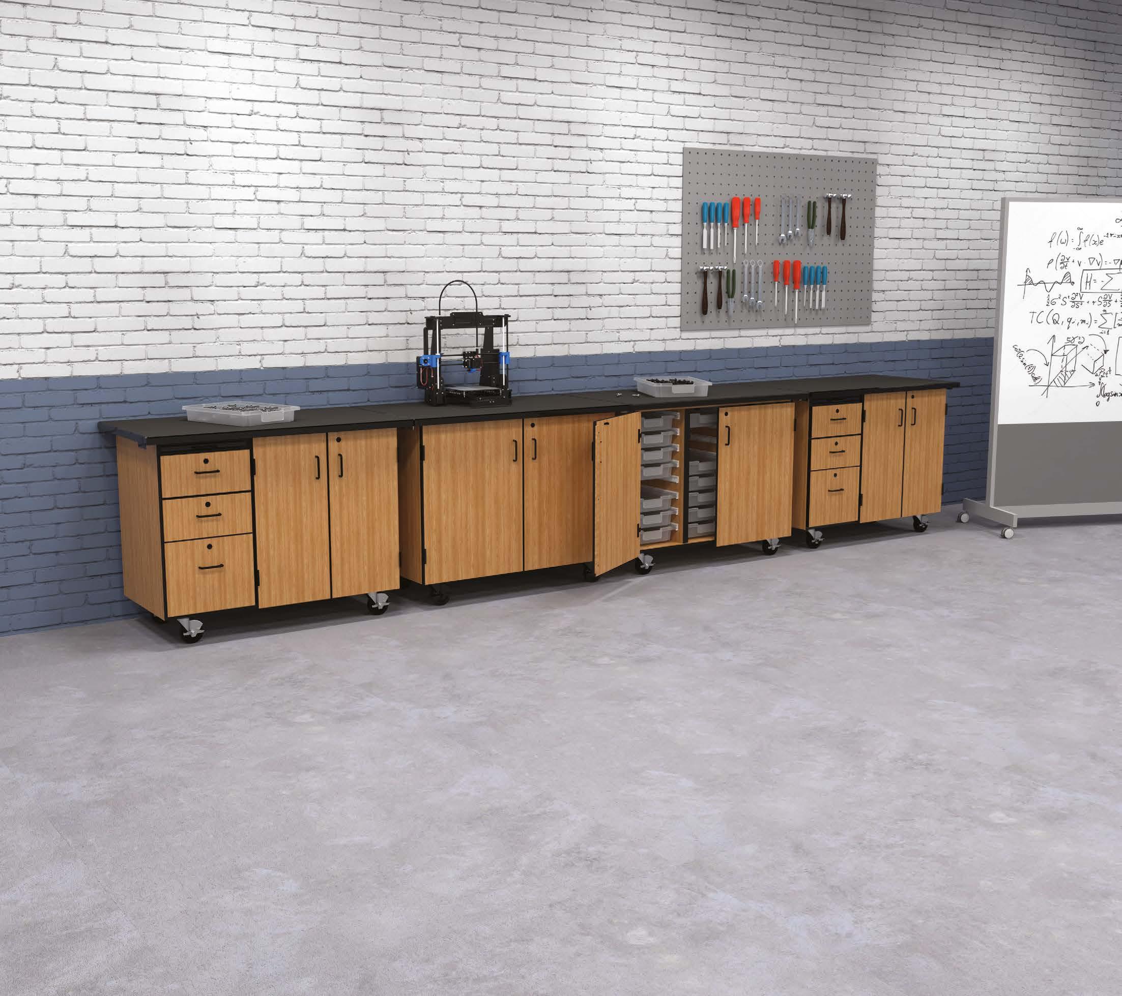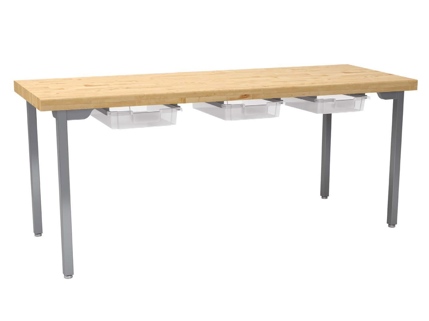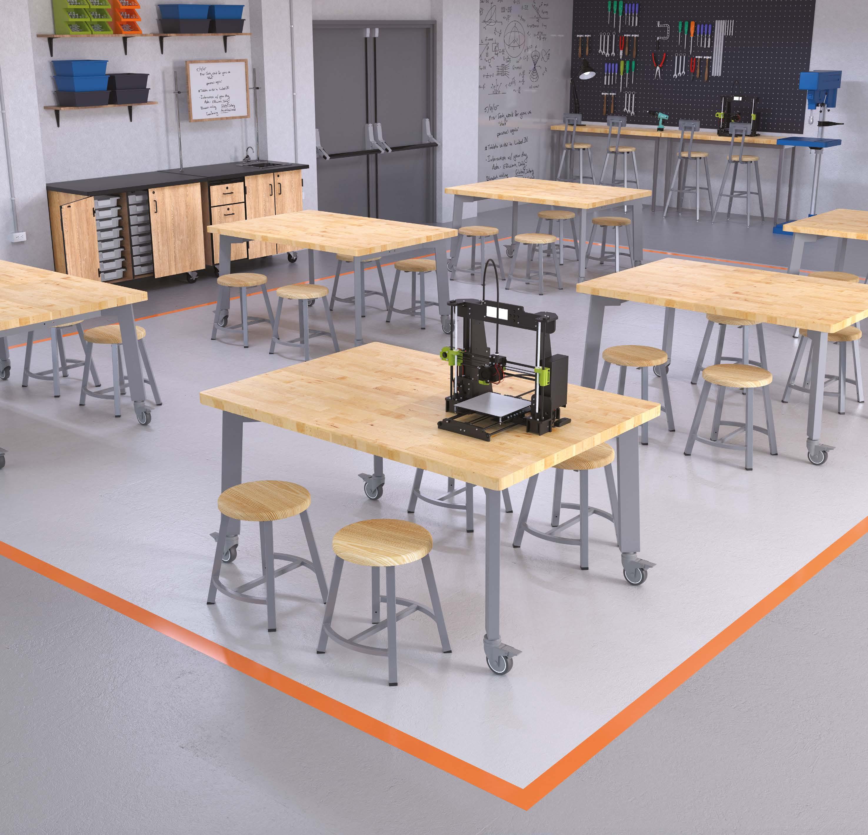 The NPS Heavy Duty Table is ideal for any makerspace environment. The 16-Gauge apron and 14-Gauge legs make this table virtually indestructible. Available with either fixed or adjustable height legs. Adjustable legs can be raised in 1" increments and are locked firmly in place with 2 K-9 external tooth lock washers and heavy duty tamper-free hex screws. All legs come standard with simple-adjust glides and have a caster option for easy mobility. Play. Work. Study.