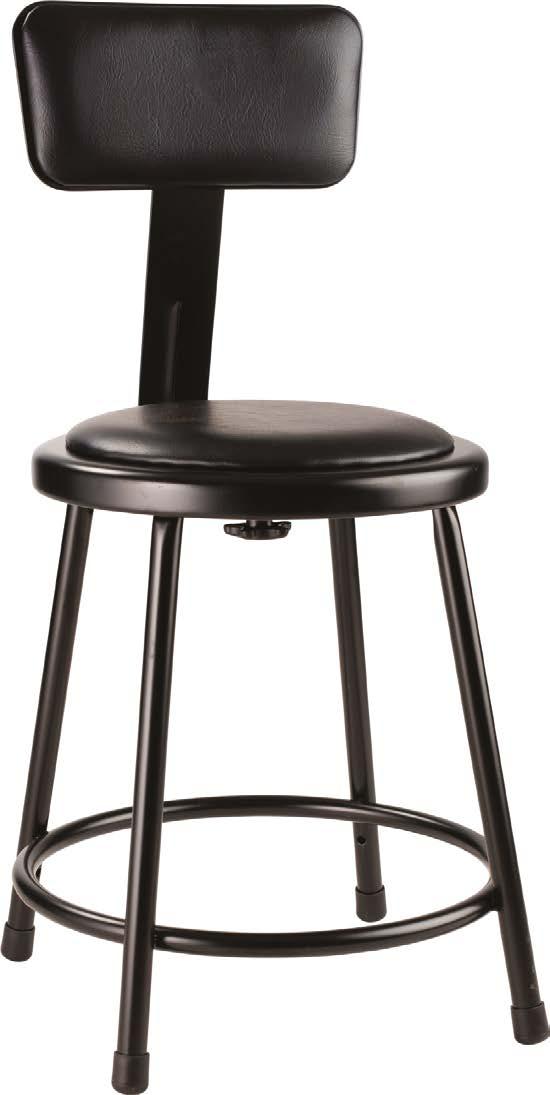 Includes Five 2” Industrial Grade Casters and Mushroom Glides Plastic Reinforced Backrest and Seat Optional Armrest With 11 Adjustable Heights, Including Lowest Position (½ Inch Increments)