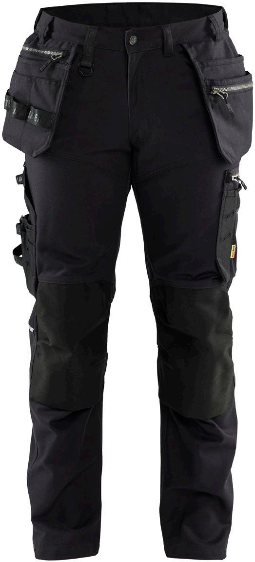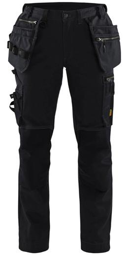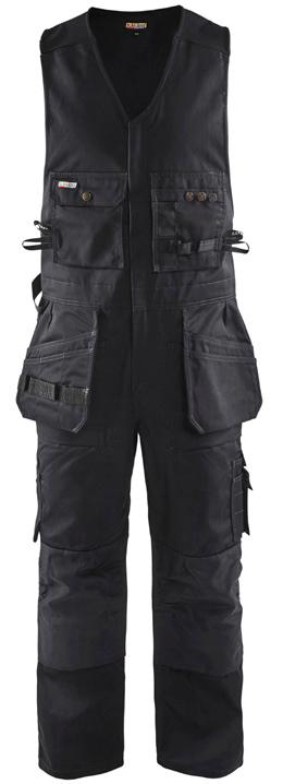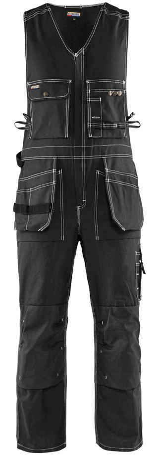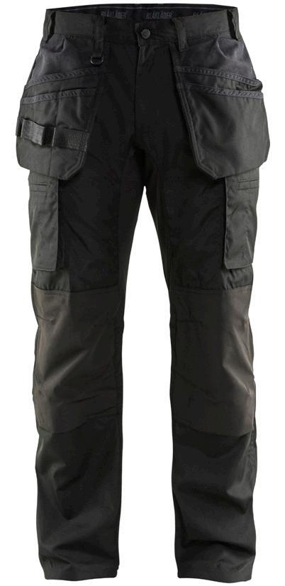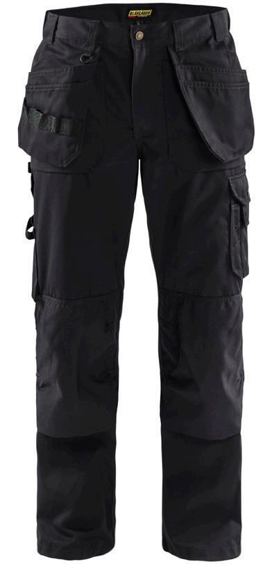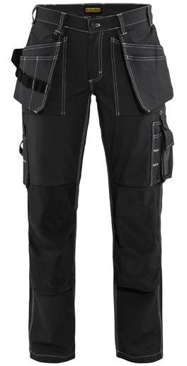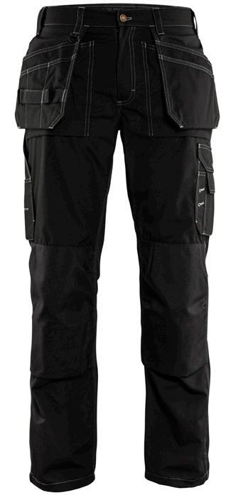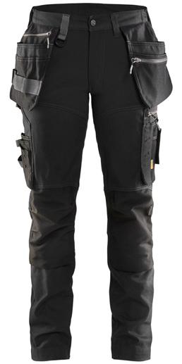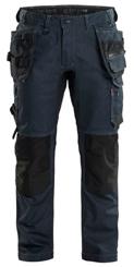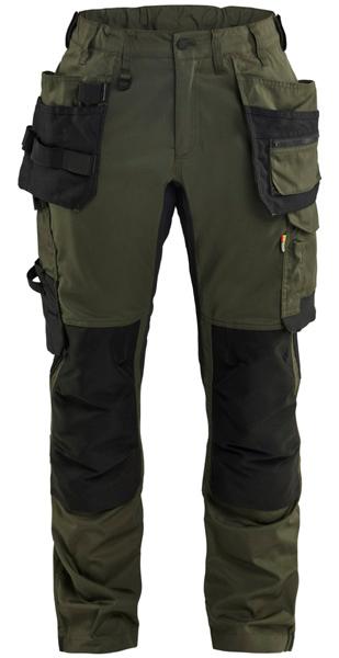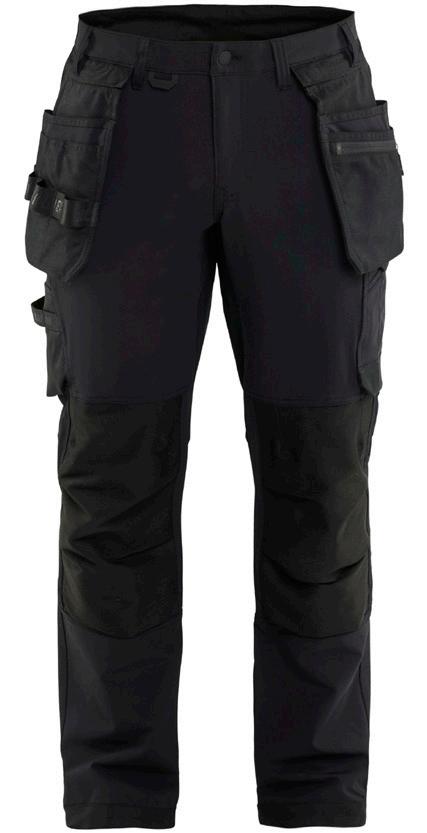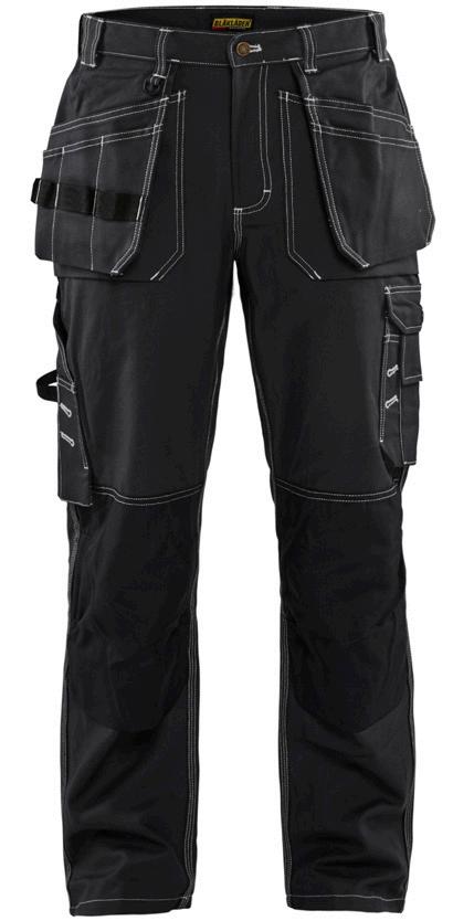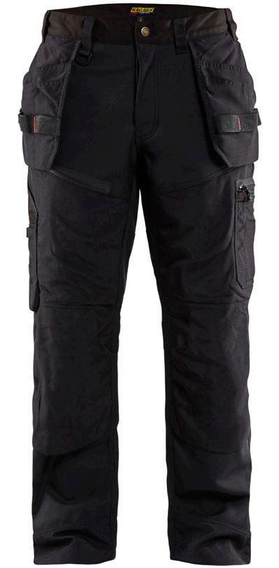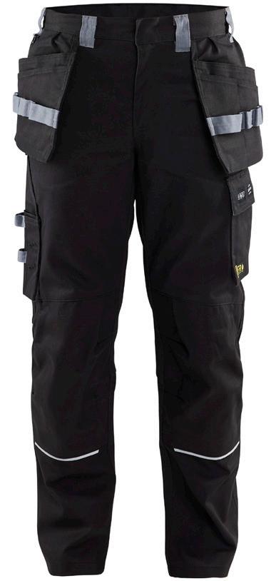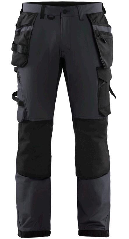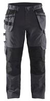 FUNKTIONALITET: 2-vejs stretch, Stretchpaneler skridt, læg og knælommer DETALJER: Gylp med knapper, To stropper med velcro siderne til hammerholdere, Brede stropper bagerst og siderne, Metalknapper, Knivholdere med knap, D-ring taljen, Forstærket syning skridtet, 3-nålssøm på indvendige ben LOMMER: Baglomme med læg, Lårlomme med læg og klap samt velcrolukning og indvendig telefonlomme mesh, Lårlomme med lynlås, Indstikslommer, Knælommer indstik fra oven med klap og velcrolukning. Stretch materiale både yderst og inderst for en bedre ergonomisk pasform, Ekstra brede værktøjslommer, forsynet med værktøjsstropper og bitslomme, Lynlås for faste eller løse værktøjslommer, Forstærket tommestoklomme med knivholder og blyantlomme