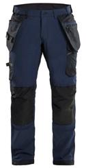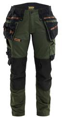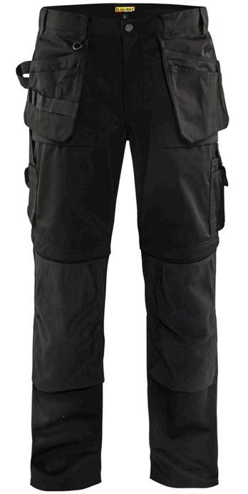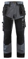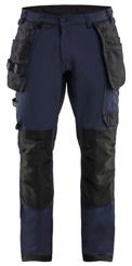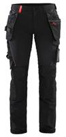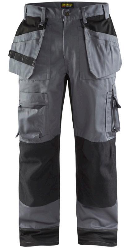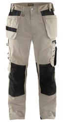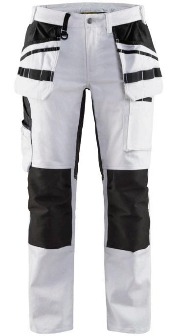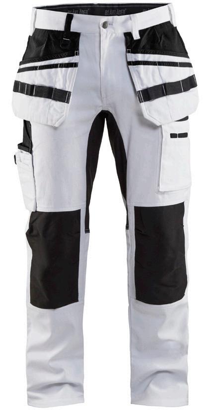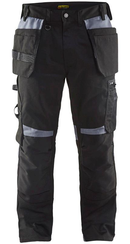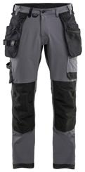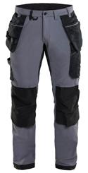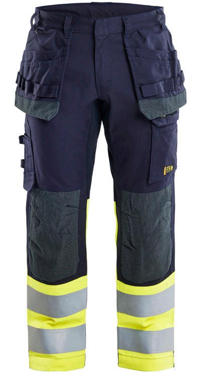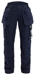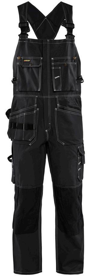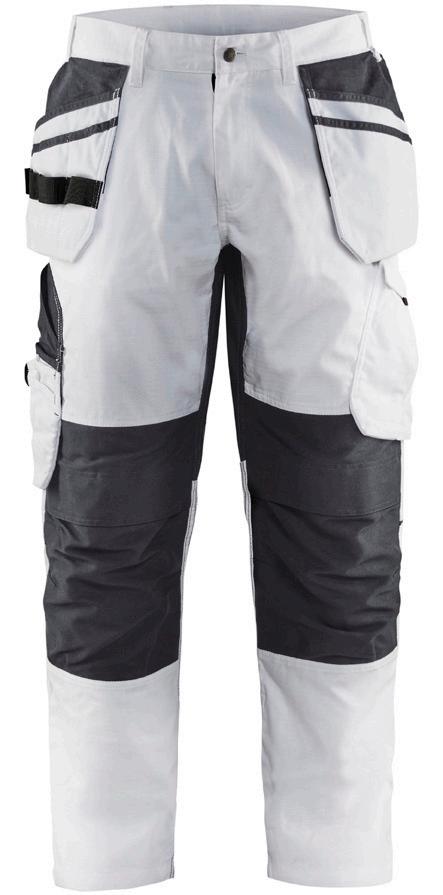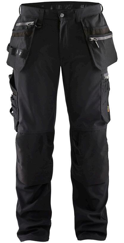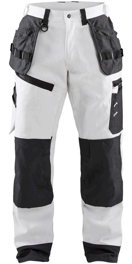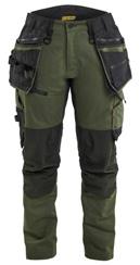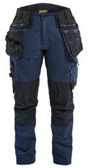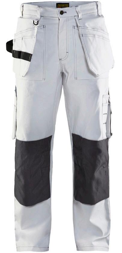 FUNKTIONALITET: 2-vejs stretch, Stretchpaneler skridt, læg og knælommer DETALJER: Gylp med knapper, To stropper med velcro siderne til hammerholdere, Brede stropper bagerst og siderne, Metalknapper, Knivholdere med knap, D-ring taljen, Forstærket syning skridtet, 3-nålssøm på indvendige ben LOMMER: Baglomme med læg, Lårlomme med læg og klap samt velcrolukning og indvendig telefonlomme mesh, Lårlomme med lynlås, Indstikslommer, Knælommer indstik fra oven med klap og velcrolukning. Stretch materiale både yderst og inderst for en bedre ergonomisk pasform, Ekstra brede værktøjslommer, forsynet med værktøjsstropper og bitslomme, Lynlås for faste eller løse værktøjslommer, Forstærket tommestoklomme med knivholder og blyantlomme