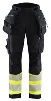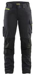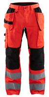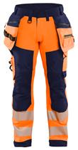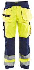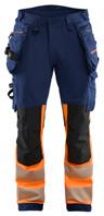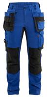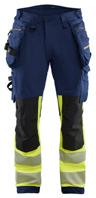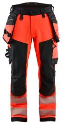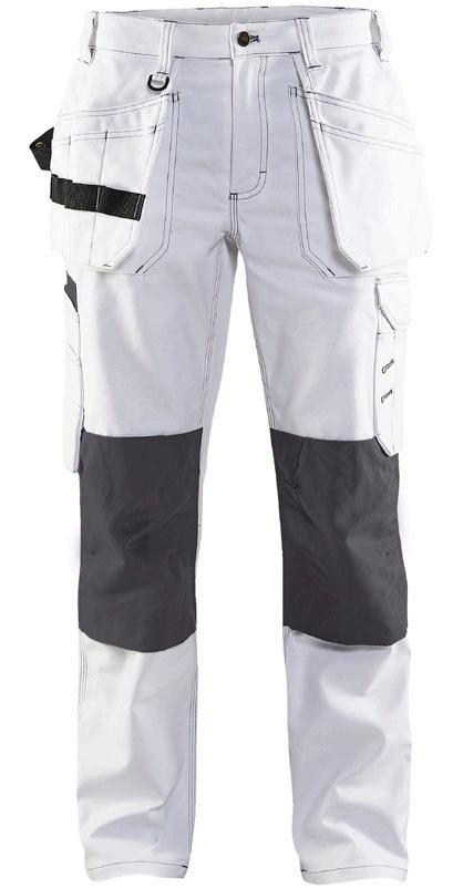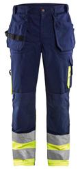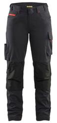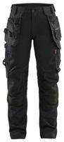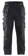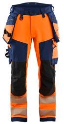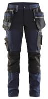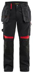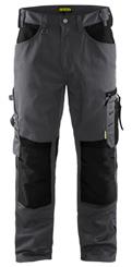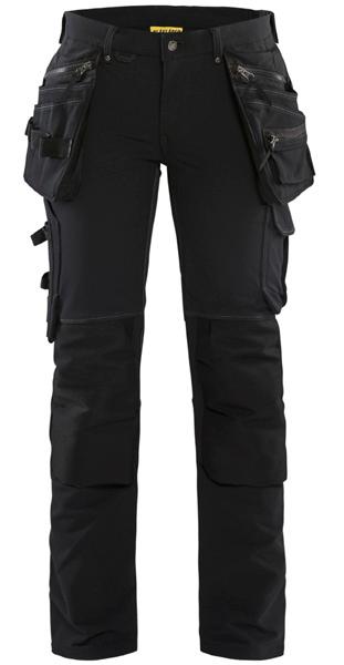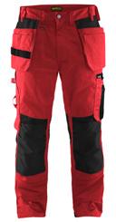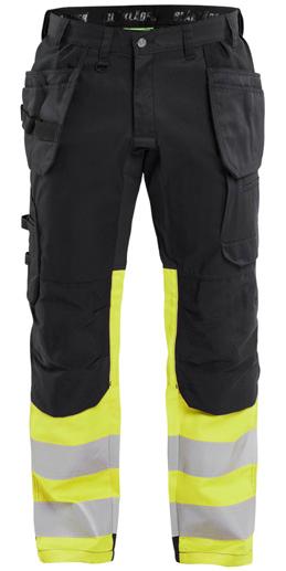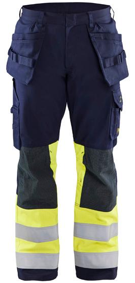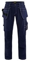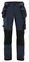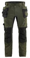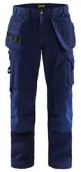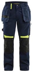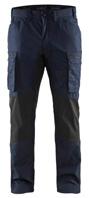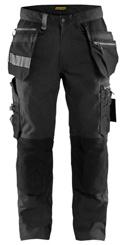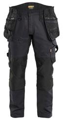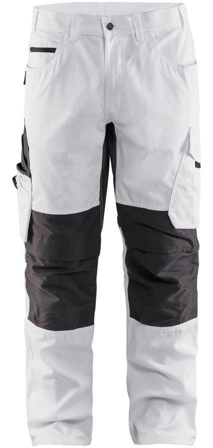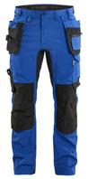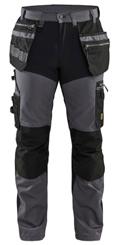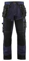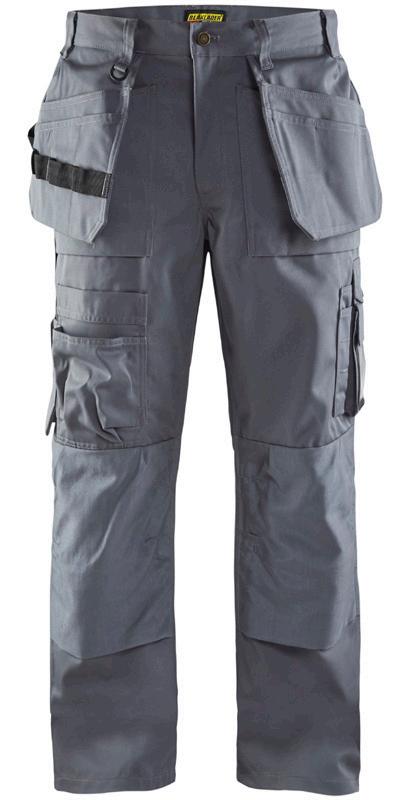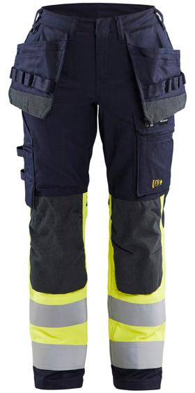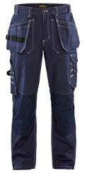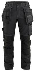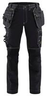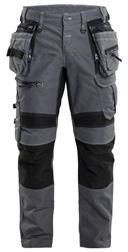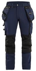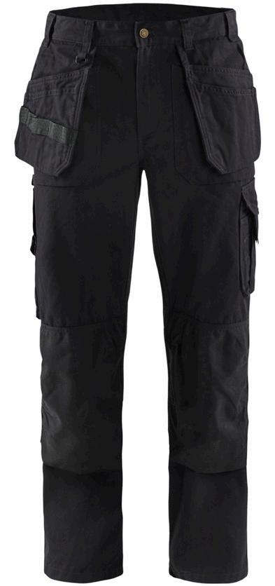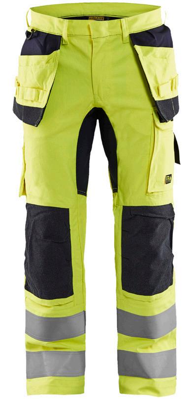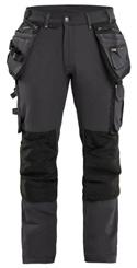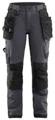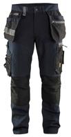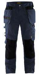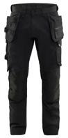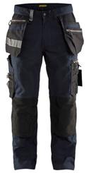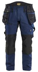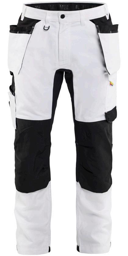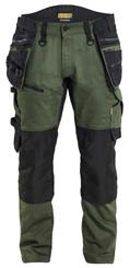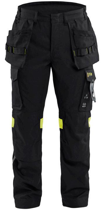 FUNKTIONALITET: 2-vejs stretch, Stretchpaneler skridt, læg og knælommer DETALJER: Gylp med knapper, To stropper med velcro siderne til hammerholdere, Brede stropper bagerst og siderne, Metalknapper, Knivholdere med knap, D-ring taljen, Forstærket syning skridtet, 3-nålssøm på indvendige ben LOMMER: Baglomme med læg, Lårlomme med læg og klap samt velcrolukning og indvendig telefonlomme mesh, Lårlomme med lynlås, Indstikslommer, Knælommer indstik fra oven med klap og velcrolukning. Stretch materiale både yderst og inderst for en bedre ergonomisk pasform, Ekstra brede værktøjslommer, forsynet med værktøjsstropper og bitslomme, Lynlås for faste eller løse værktøjslommer, Forstærket tommestoklomme med knivholder og blyantlomme